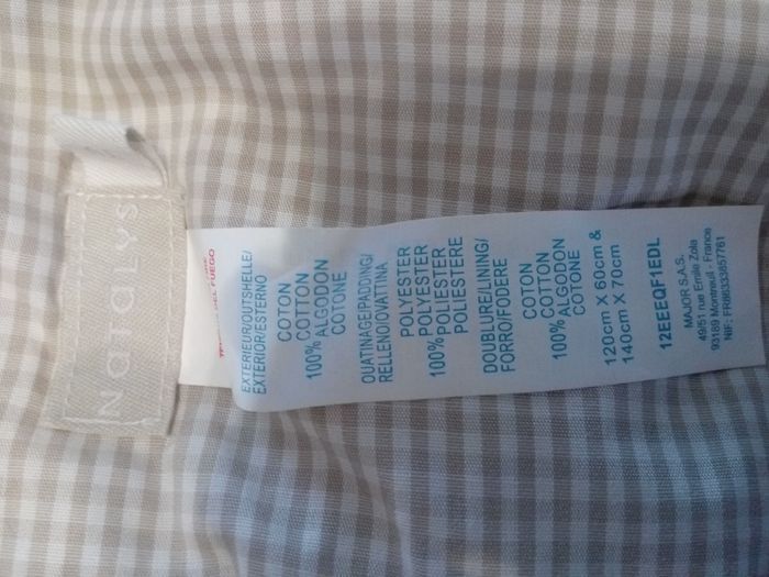 TOUR DE LIT NATALYS TAILLE UNIQUE EXTERIEUR & DOUBLURE 100% COTON, OUATINAGE 100% POLYESTER EN TRES BON ETAT ACHETE NEUF ET UTILISE PAR UN SEUL ENFANT (REF PERSO F-Z16)