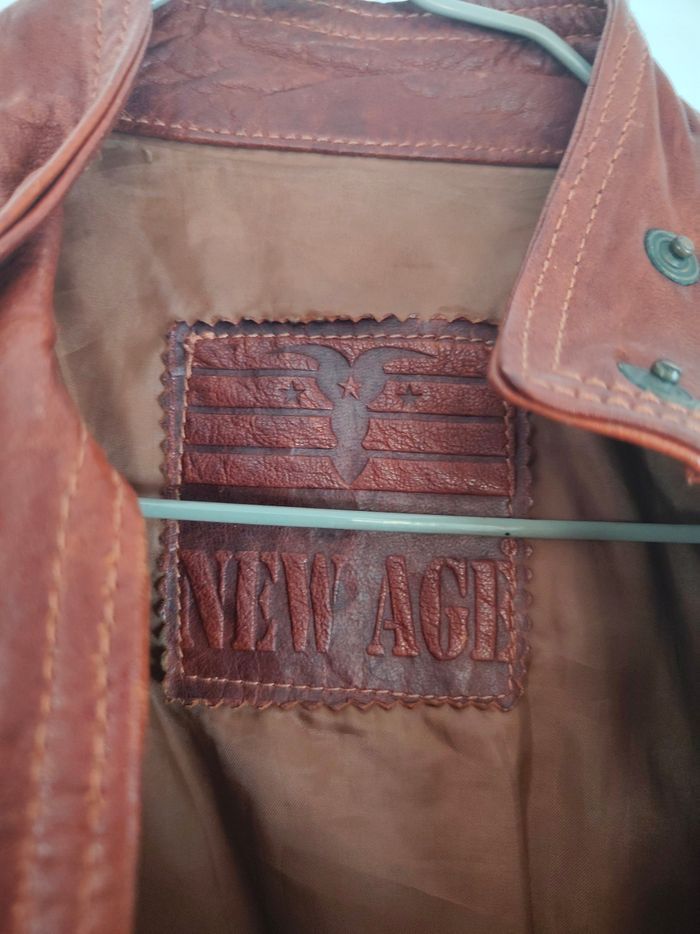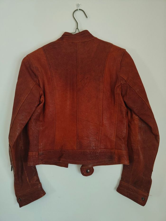 Très belle veste en cuir vieilli marron clair en très bon état.