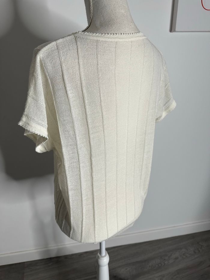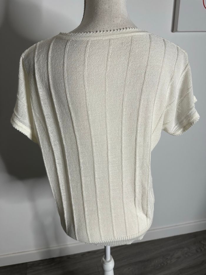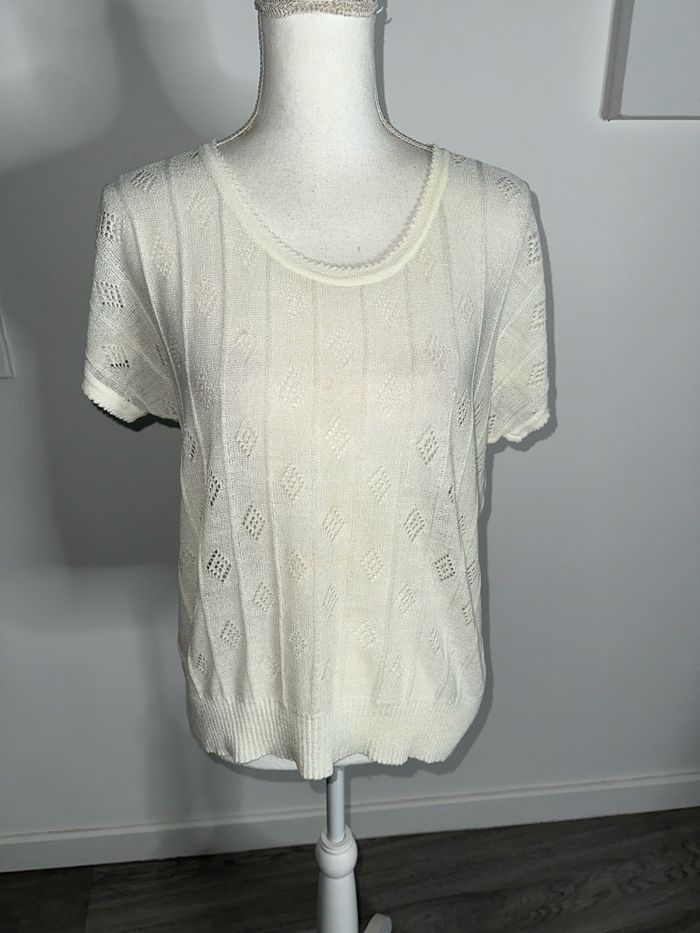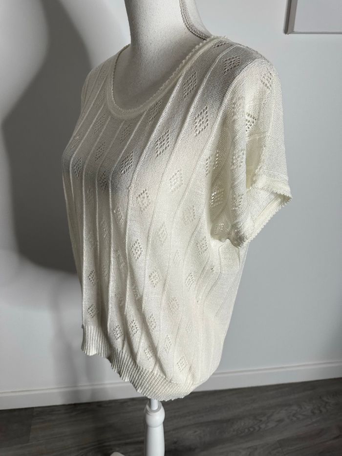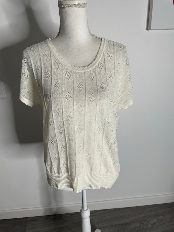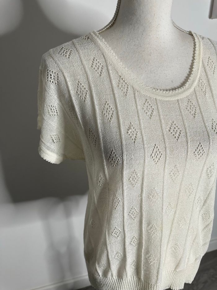 T-shirt blanc crème en maille ajourée Vintage T40 L - photo numéro 1
