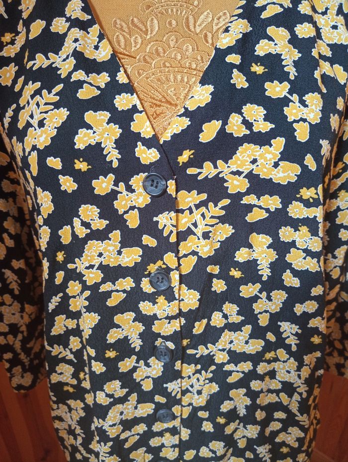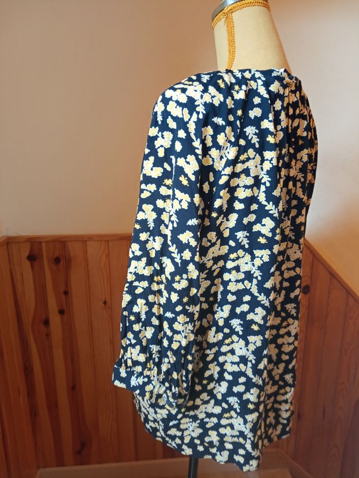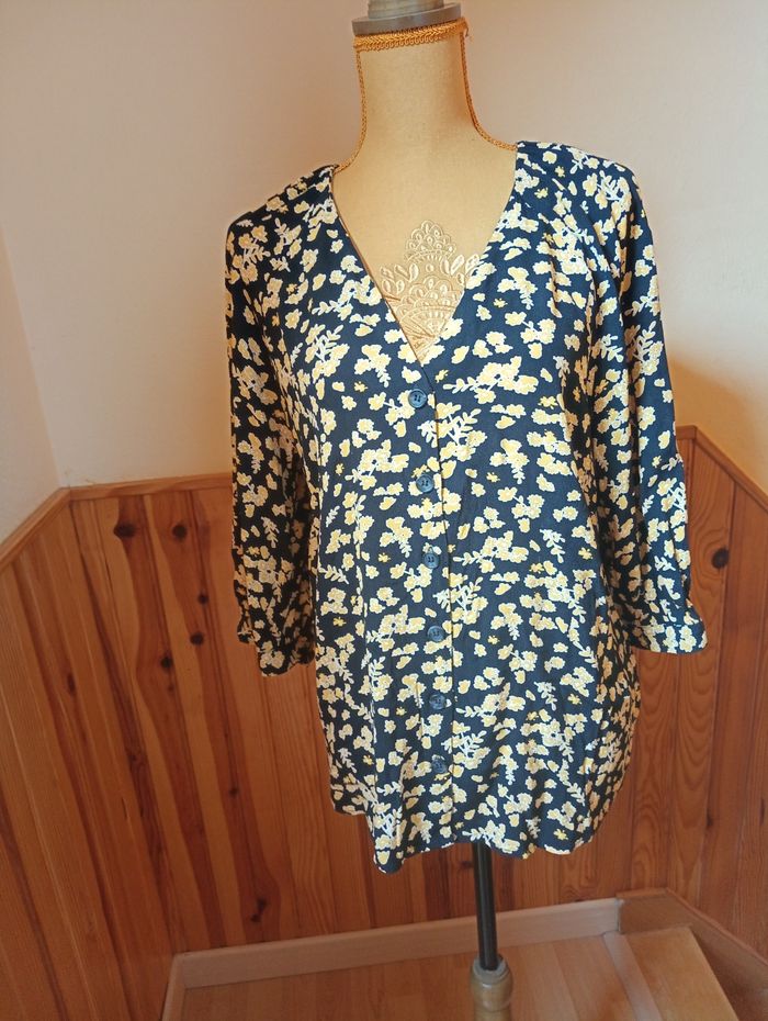 Blouse manches longues 3/4 ELORA Taille 42/44 motif bleu marine et jaune Parfait état, matière coton acrylique