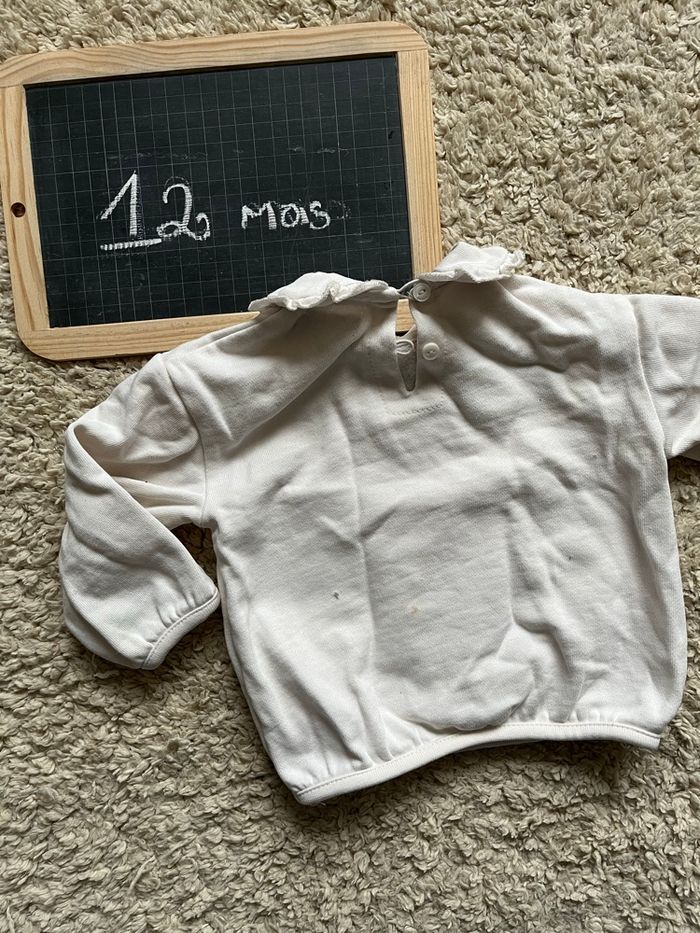 Pull blanc 12 mois col Claudine  - photo numéro 1