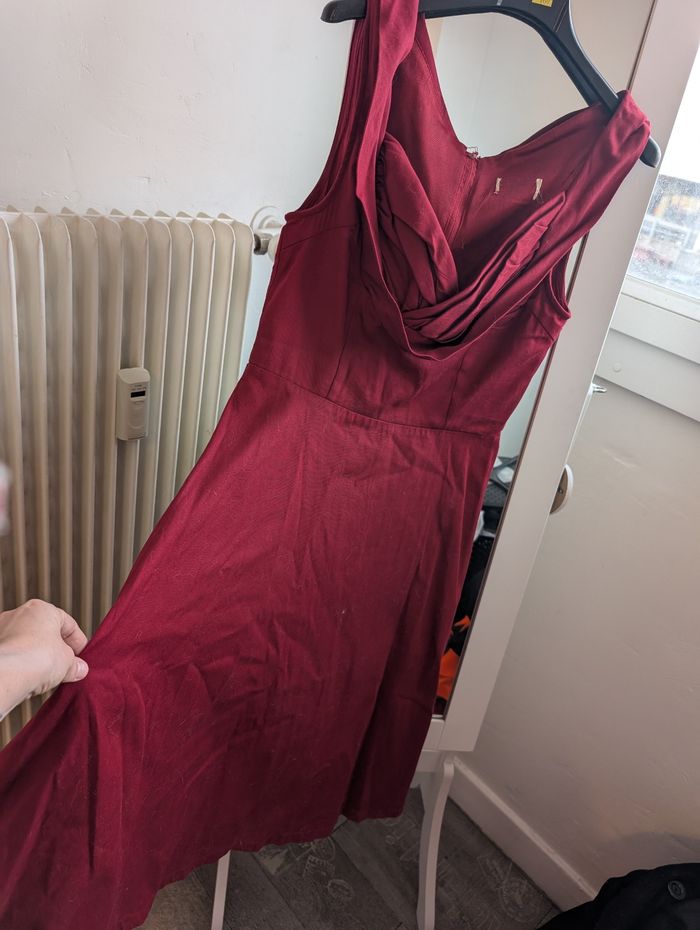 Robe de pin up de la marque Lindy hop, porté plusieurs fois, pas abîmé du tout. Cintré a la taille, gros décolleté. Arrive sous le genoux.