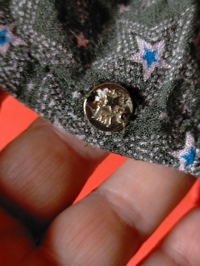 TBE Très jolie robe façon crêpe bronze/kaki à motif d'étoiles roses et bleues. Petite médaille ikks dorée à la base et zip au dos