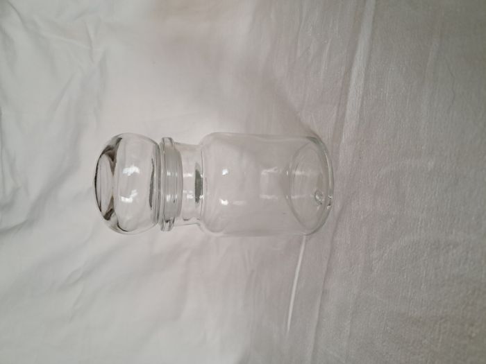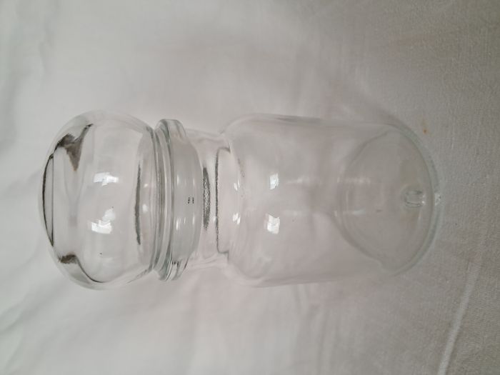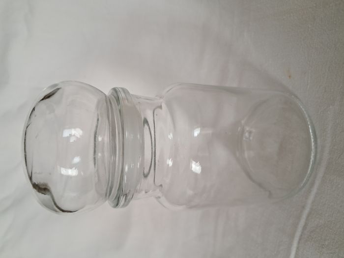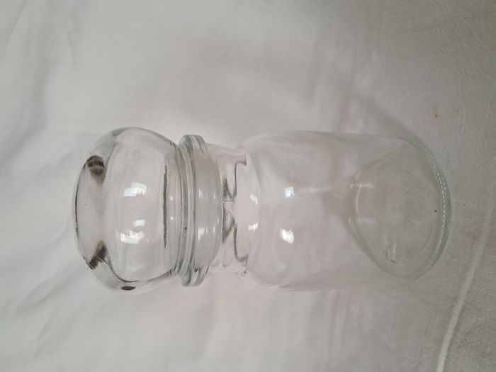 Bocal hermétique style pot d'apothicaire en verre transparent Made in belgium Ancien, vintage Hauteur : 14 cm Diamètre : 7 cm Poids : 280 grammes Très bon état