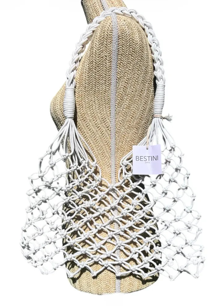 Sac à main en filet Bestini Paris blanc tressé à la main Neuf