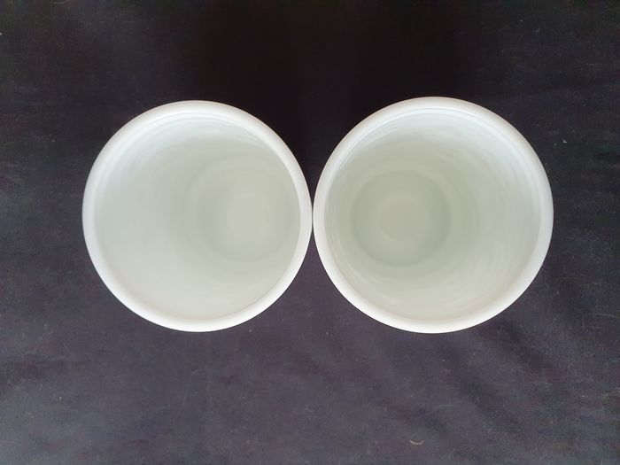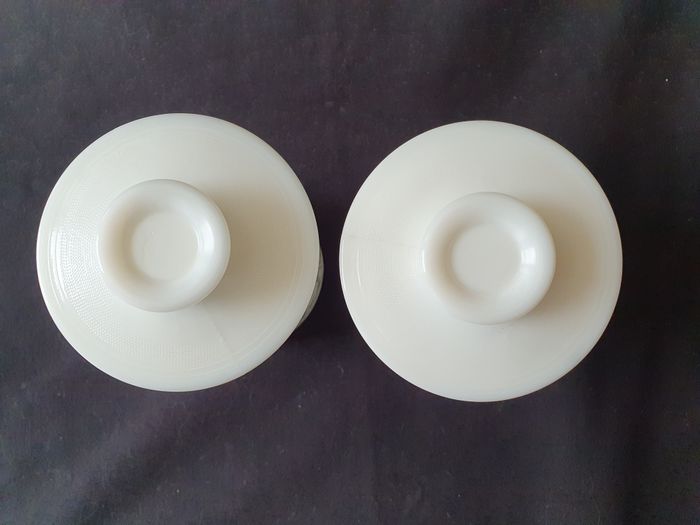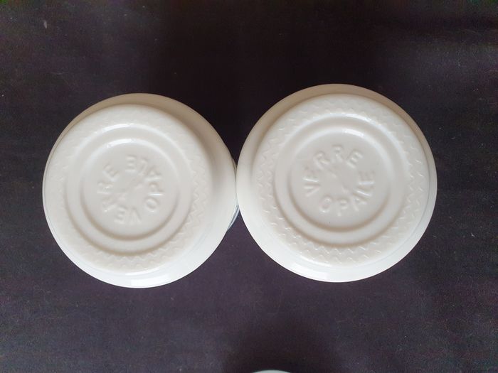 10 Lot de 2 pots en verre opale blanc motifs feuille en relief style arcopal - photo numéro 1