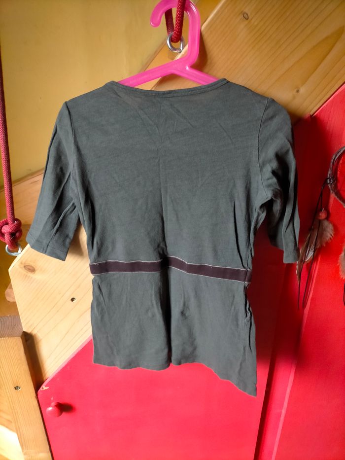 TBE Très jolie robe à manches 3/4 en coton épais kaki avec taille marquée par un ruban de velours et tampon bellerose à la base.