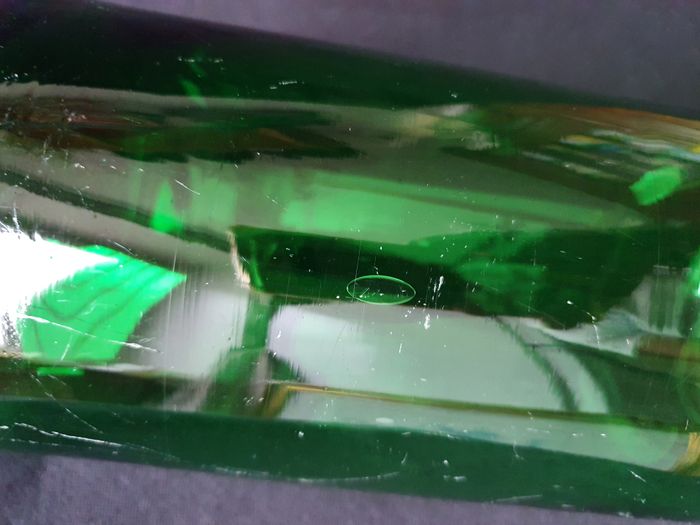 Ancien grand pot bocal en verre soufflé vert avec bouchon en liège Vintage Hauteur (sans bouchon) : 31,5 cm Diamètre : 12,5 cm Diamètre du col : 8 cm Poids : 1,060 kg Etat satisfaisant car il a des rayures un peu partout, une trace noire a l'intérieur, le dessus du bouchon est un peu noir, il y a des bulles à l'intérieur du verre voir les photos Pas de fêle, pas d'éclat