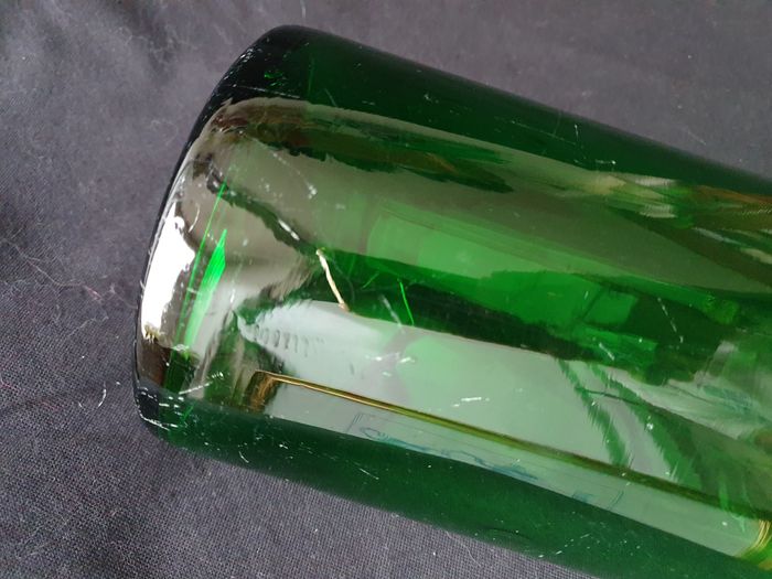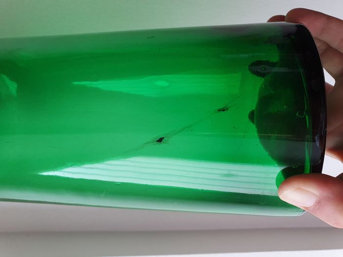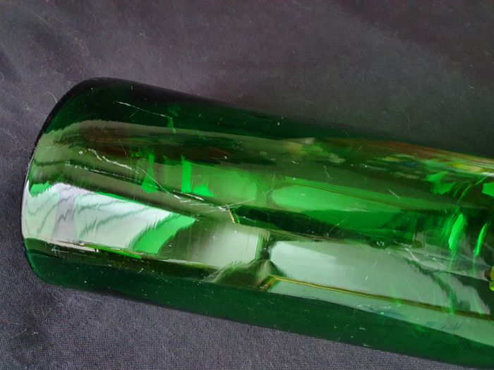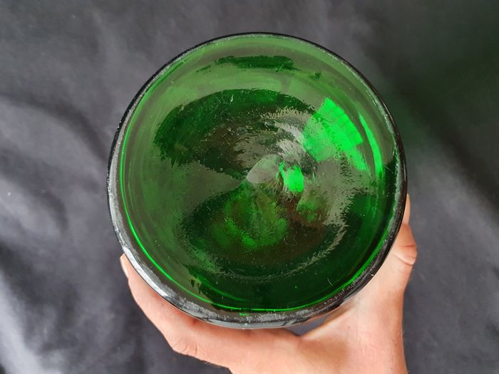 Ancien grand pot bocal en verre soufflé vert avec bouchon en liège H 31,5 - photo numéro 9