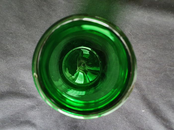 Ancien grand pot bocal en verre soufflé vert avec bouchon en liège H 31,5 - photo numéro 7