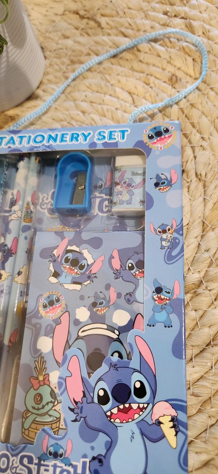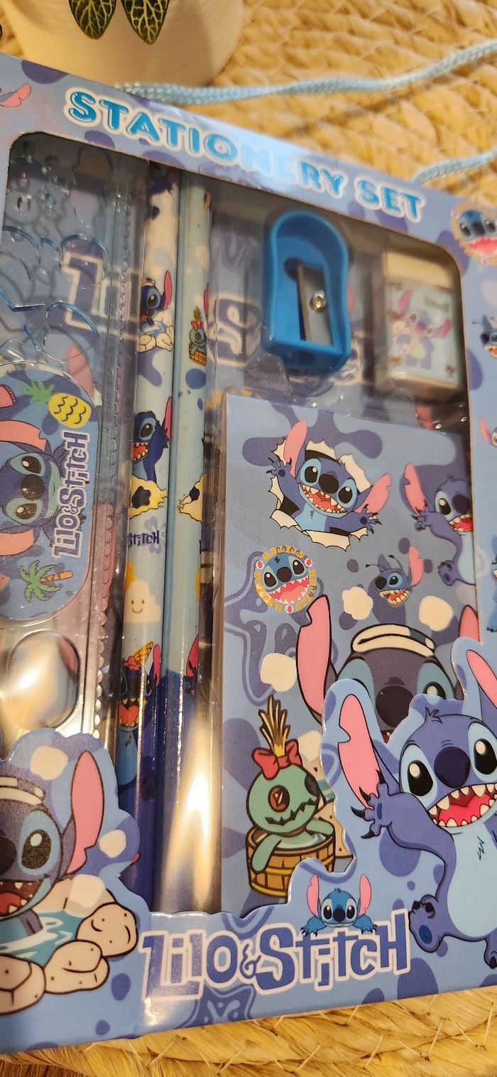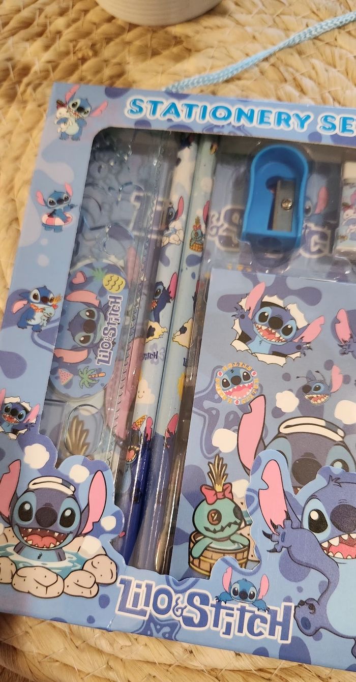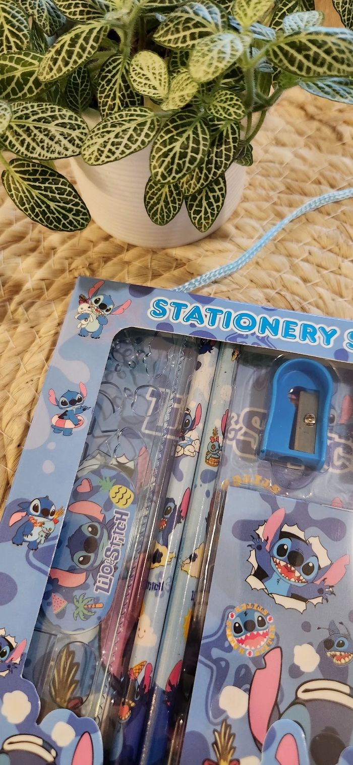 Coffret Stitch Bleu Set Crayons Contient: ✨️2 Crayons de papier ✨️1 Gomme ✨️1 Taille crayon ✨️1 Bloc Note ✨️1 Règle Neuf jamais ouvert !! Envoi sous 48H hors week-end Pensez au lot pour des Réductions ✨️