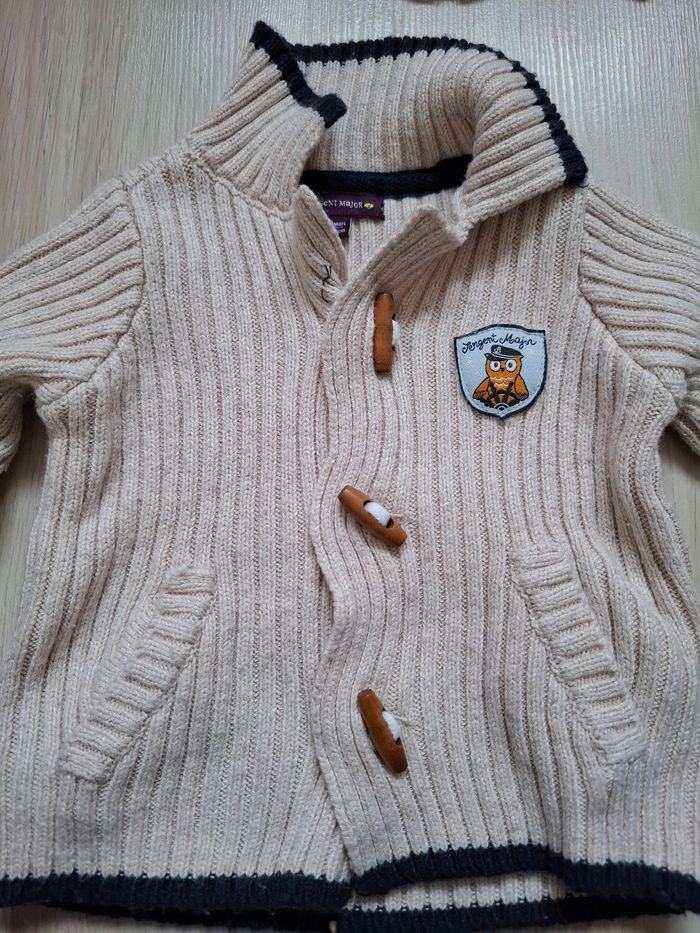 Vends 2 gilets, taille 9 mois 1 avec fermeture éclair et poches de la marque Orchestra 1 avec fermeture boutons et poches de la marque Sergent Major Bon état