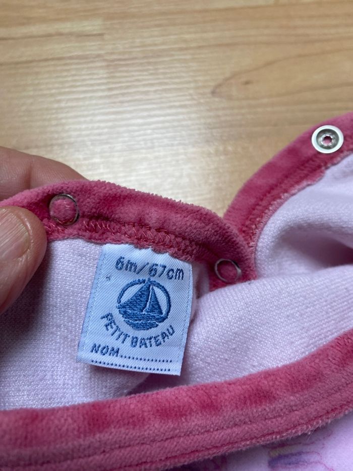 Pyjama « Petit bateau » 6 mois (67cm) dans les tons rose, motif discret devant et sur 1 jambe, pressions dans le dos