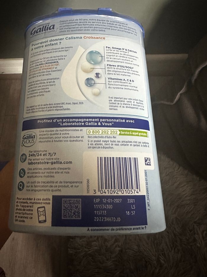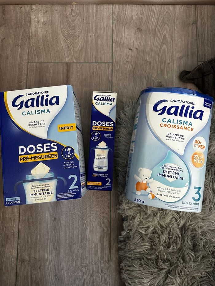 Lot à vendre pour 7€ 🙂 🍼 1 boîte pour bébé de 6 à 12 mois avec doses pré-mesurées avec 21 sachets de 5 doses chacune + un petit paquet de 3 sachets de 5 doses chacune. Neuf jamais ouvert ! 🍼 1 boîte calisma croissance en poudre pour bébé dès 12 mois. Neuf jamais ouvert ! Les dates d’expiration sont visibles sur les photos