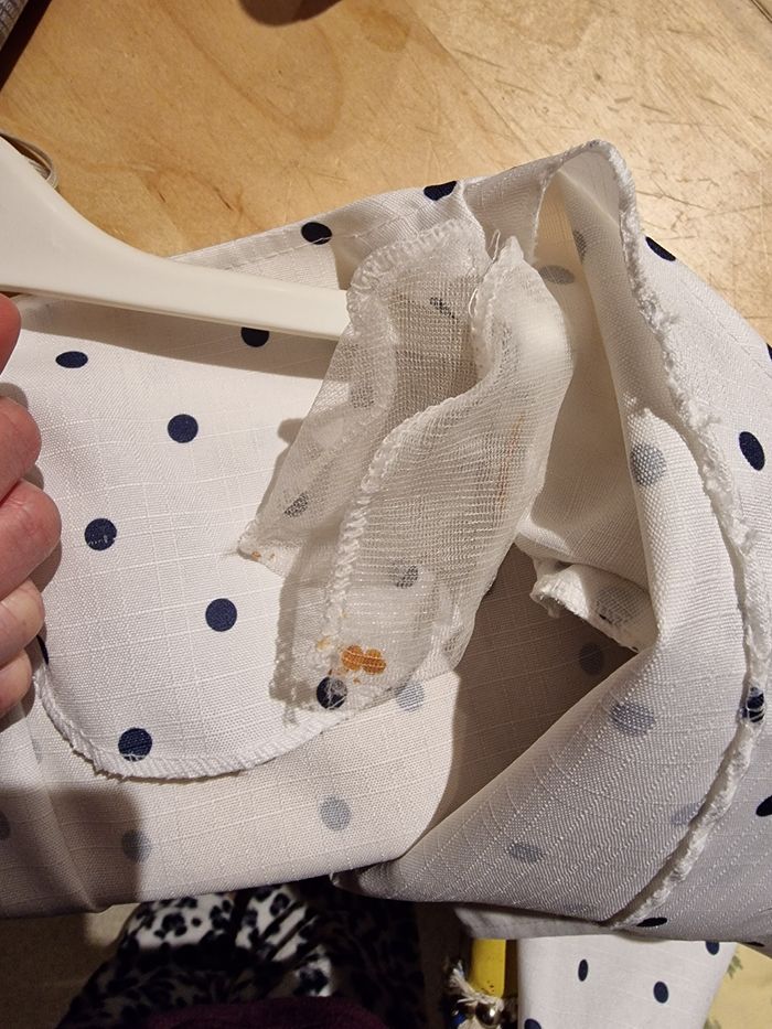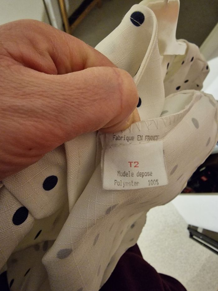 Je vends cette veste vintage en polyester à pois noirs sur fond blanc. - Type de produit : Veste - Taille : 42 - XL - Couleur : Blanc à pois noirs - Matière : 100% polyester - Caractéristiques : Boutons, -⚠️ les épaulettes sont abîmées, Manches longues N'hésitez pas à me contacter pour plus d'informations ou de photos.