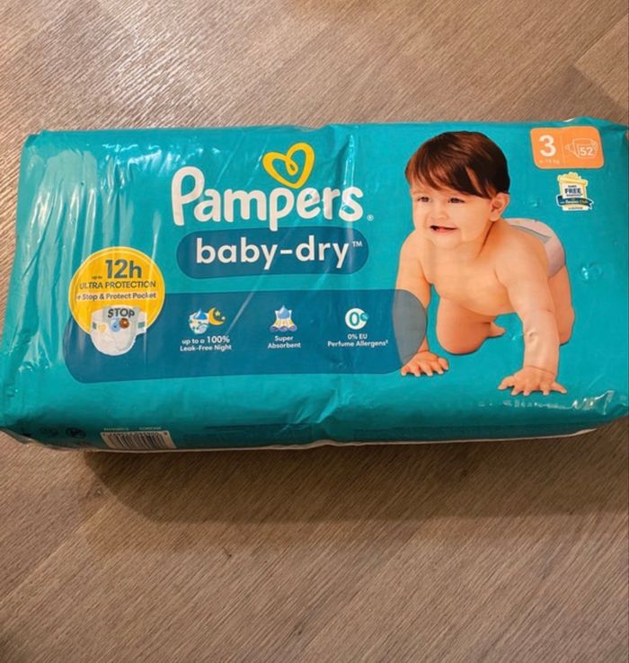 Paquet de 52 couches Pampers baby-dry neuf Taille 3 - 6 à 10 kg 12h ultra protection