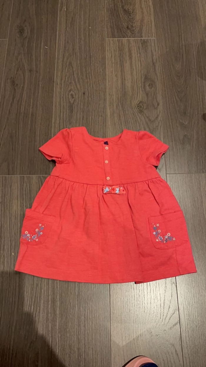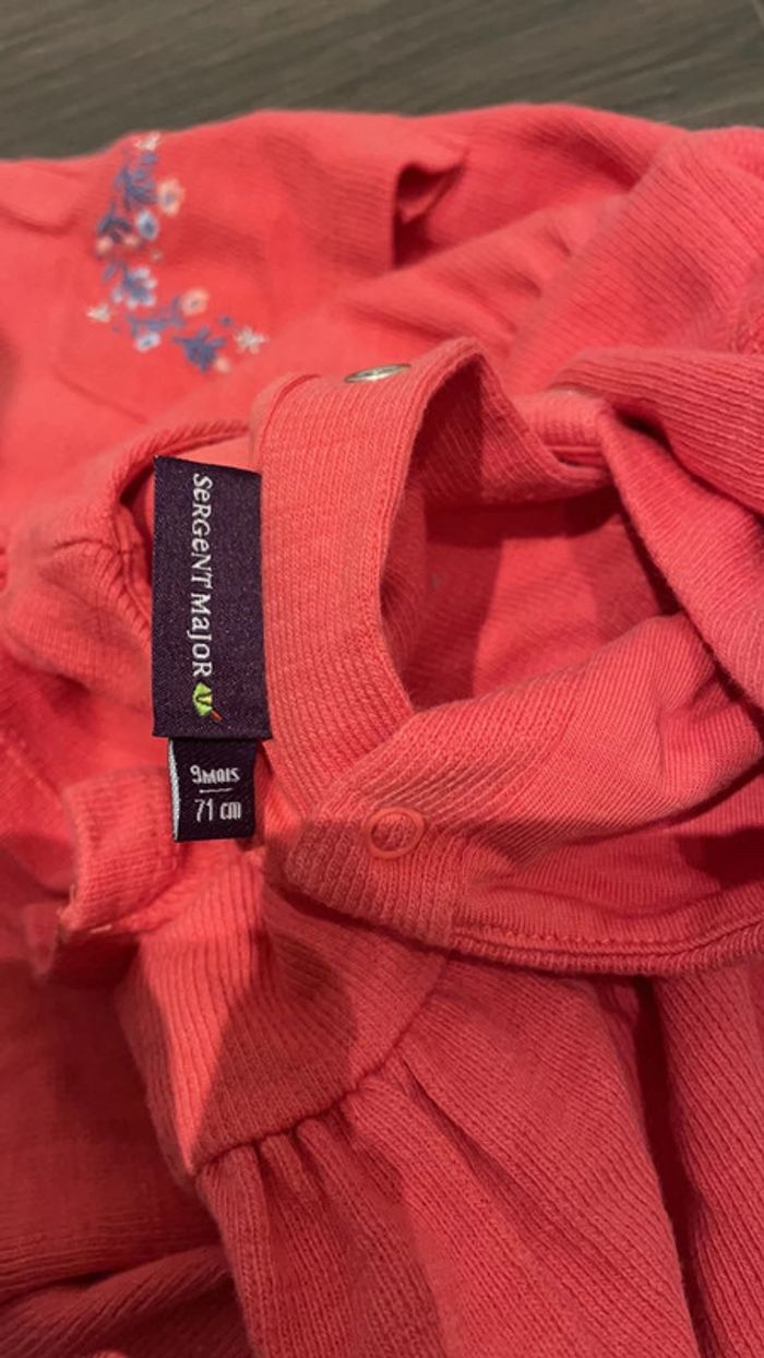 Robe couleur corail-fraise. Taille 9 mois (grand). Marque : Sergent Major. En très bon état.