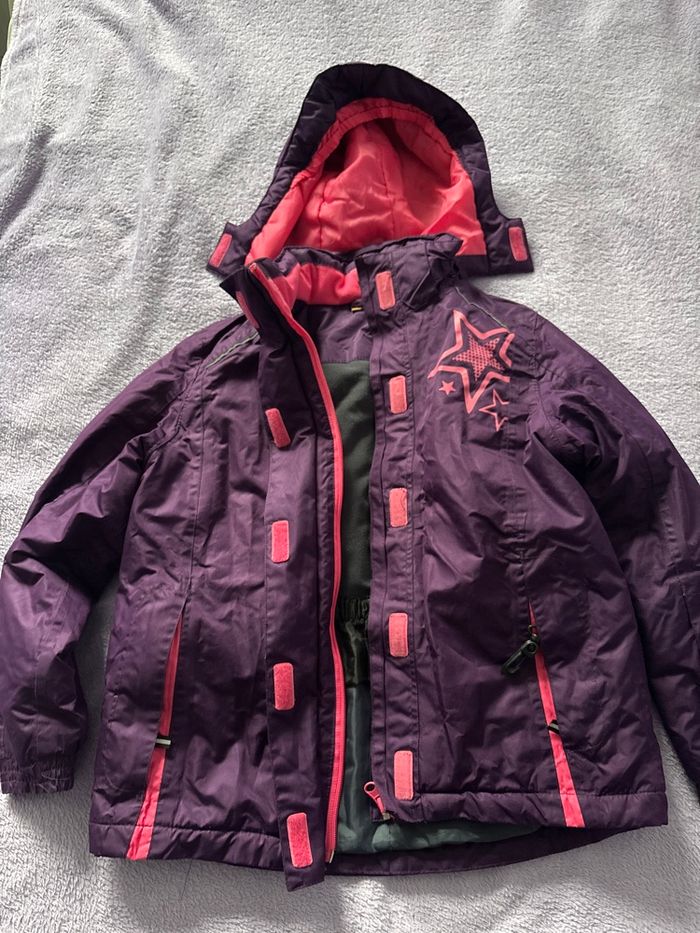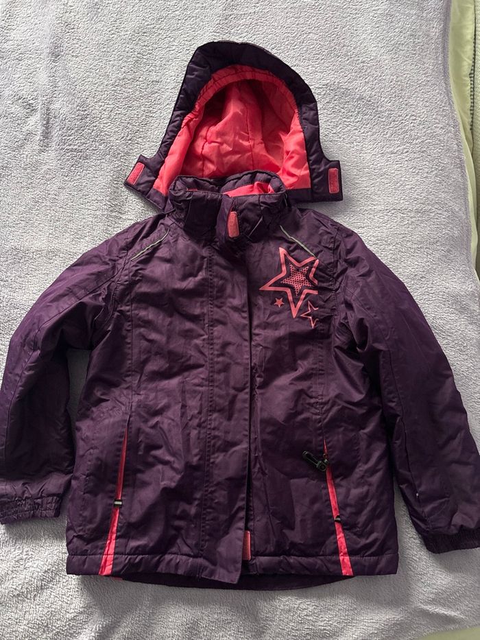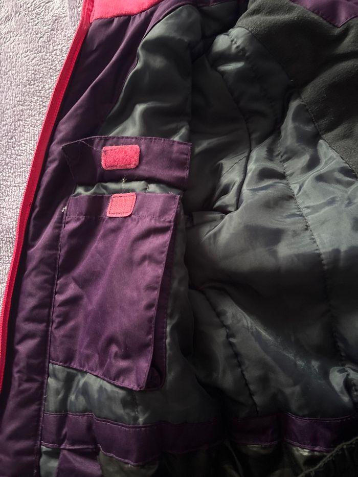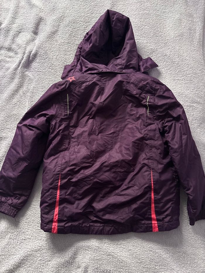 Veste pour le ski ou d’hiver 8-10 ans. Capuche détachable Fermeture par tirette et scratch 2 poches latérales fermeture par tirette, dans 1 poche possibilité d’accrocher les gants Poche intérieure avec fermeture scratch Fermeture intérieure au niveau eau du bassin par boutons pression