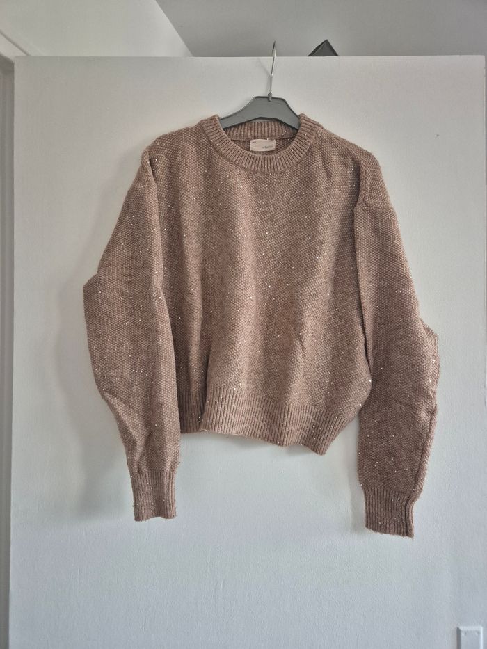 Pull numéro avec sequin argenté taille S/M