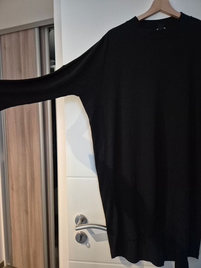Robe oversize Manche 3/4 Plus longue a l'arrière Couleur noir Marque monki Taille M ( convient aussi a un M) Largeur aisselles: 70cm Longueur avant: 78cm Longueur arrière: 97cm Présence de bouloches ( cf photos)