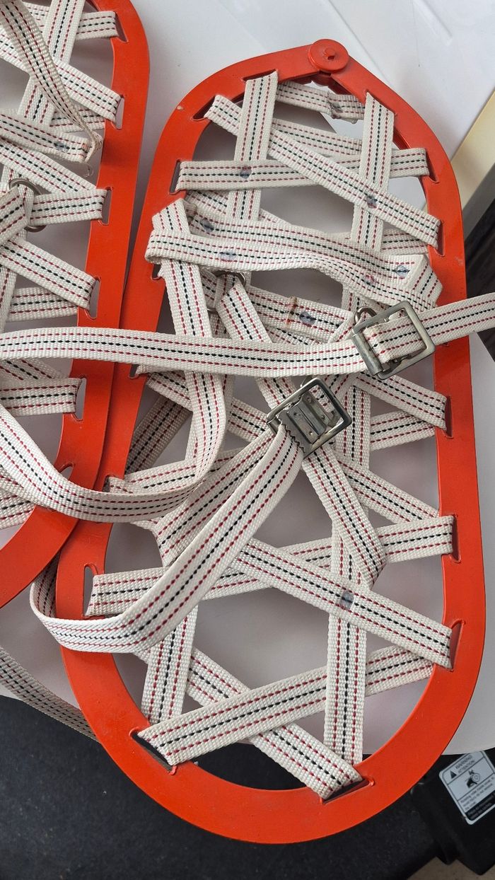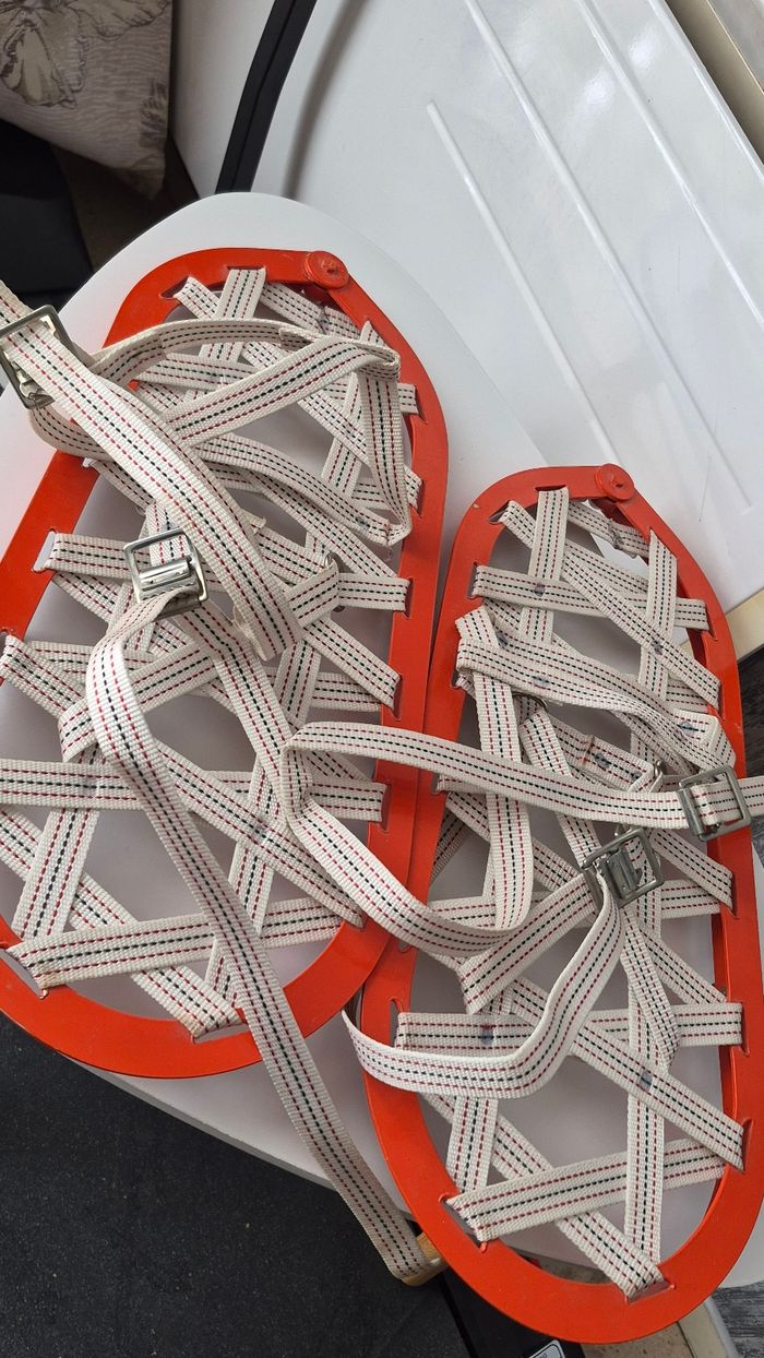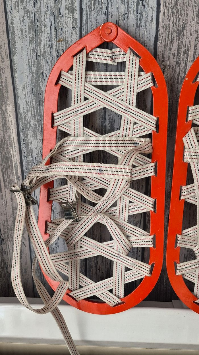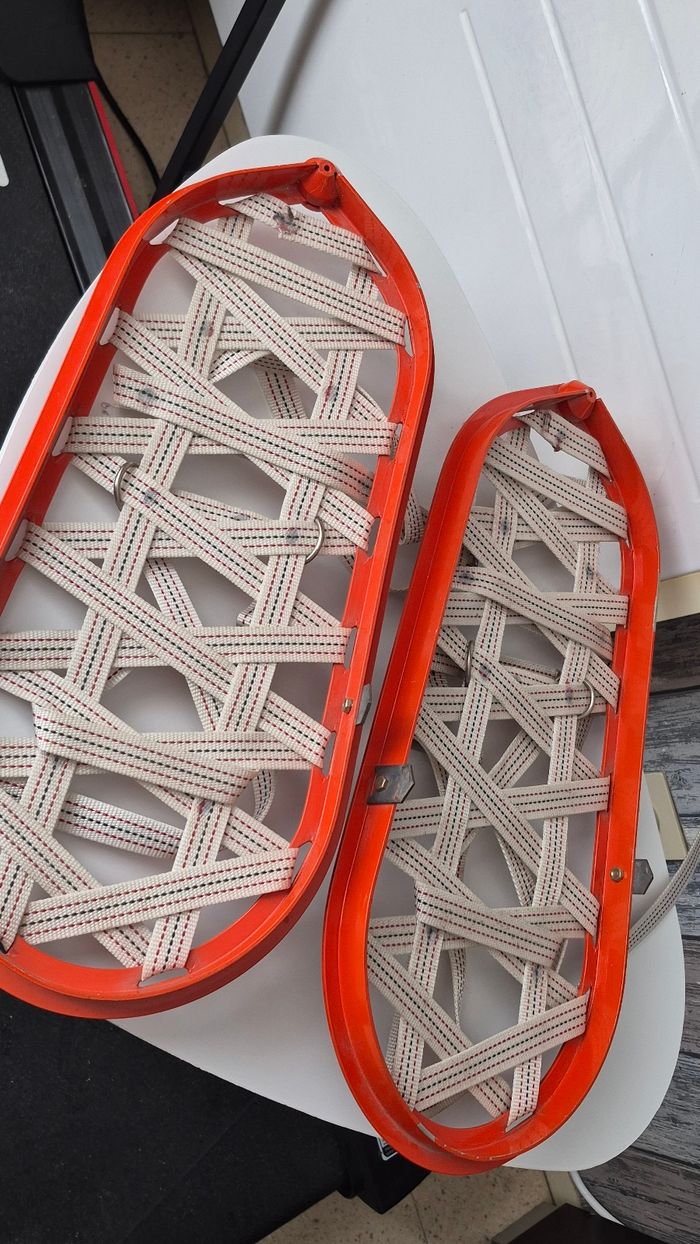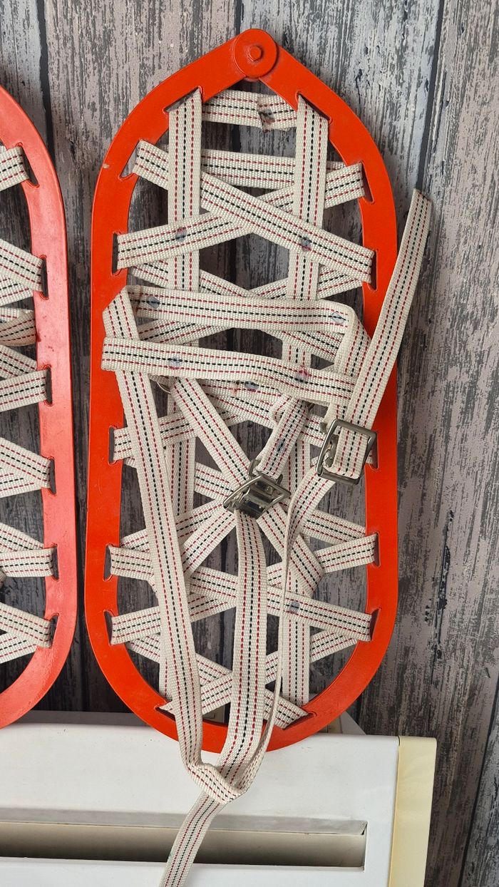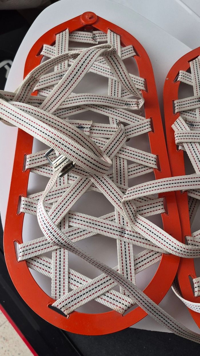 A vendre 1 paire de raquettes à neige, 44 cm de long, 20 cm de large, très bon état. Paire de raquettes à neige solides, idéales pour les randonnées hivernales et les balades en terrain enneigé. Structure résistante avec laçage robuste et sangles réglables pour un bon maintien du pied et une utilisation confortable. ✔️ Type : Raquettes à neige ✔️ Couleur : Rouge / sangles claires ✔️ Fixations réglables avec boucles métalliques ✔️ Bonne stabilité et accroche sur la neige ✔️ Convient pour randonnées et loisirs d’hiver ✔️ très bon état général Un équipement fiable pour profiter pleinement de la neige en toute sécurité ❄️✨
