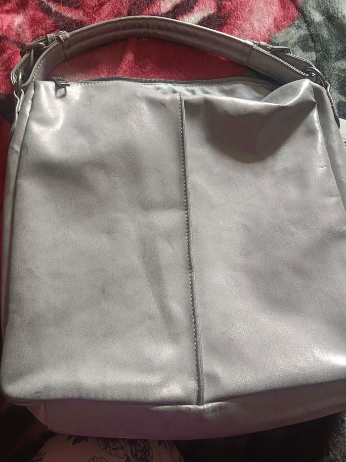 Grand sac a main bandoulière fourre tout couleur gris avec quelques traces voir photos 2 grandes poche a fermeture sur chaque côté du sac Jamais porté avec étiquette