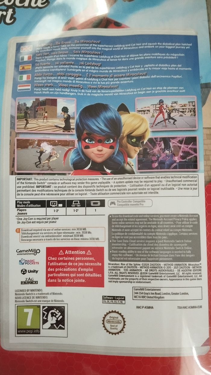 Bonjour Je vends ce jeu switch Miraculous avec sa sacoche de transport . Neuf sous blister jamais ouvert Idéal pour offrir aux fans du dessin animé Le jeu c'est un code de téléchargement Multi langue cf photos Envoi rapide et protégé Cadeaux jouet fille gay anniversaire dessin animé Disney Nintendo Switch étui