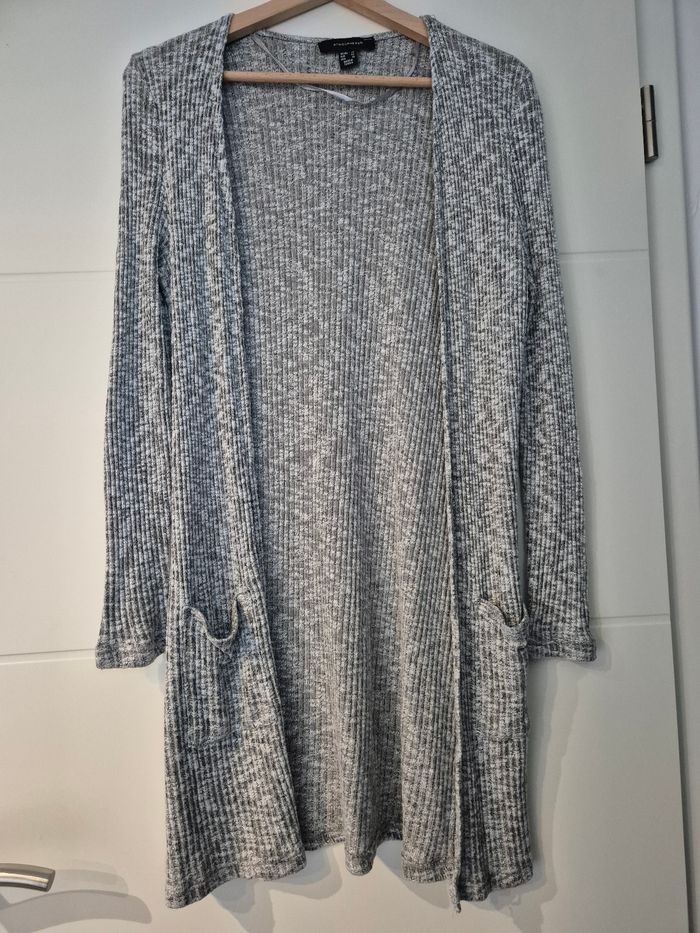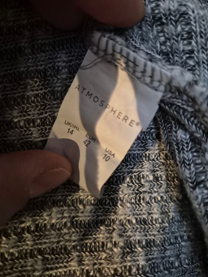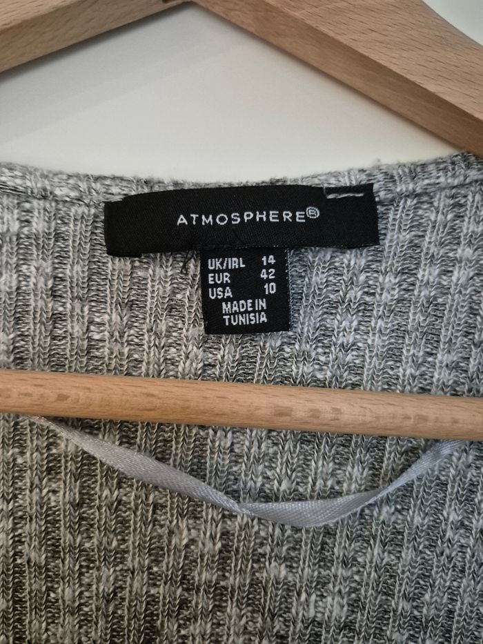 Gilet long Gris moucheté Marque atmosphère Taille noté 42 ( porté pour du 38) Très étirable Largeur épaule : 43cm Largeur aisselles: 47cm Longueur 85cm Très bon état