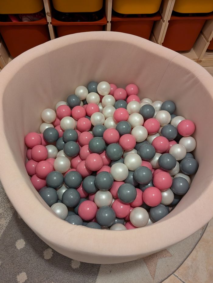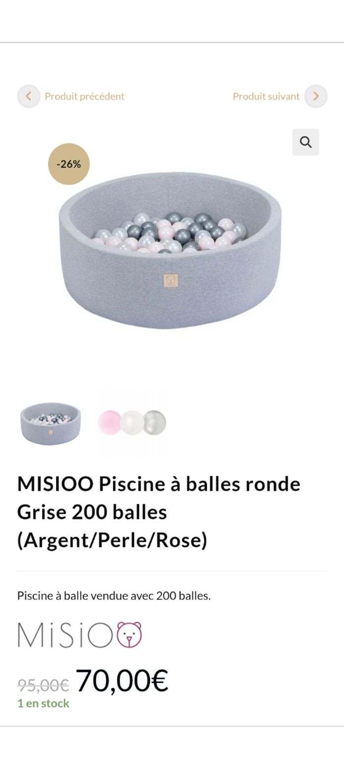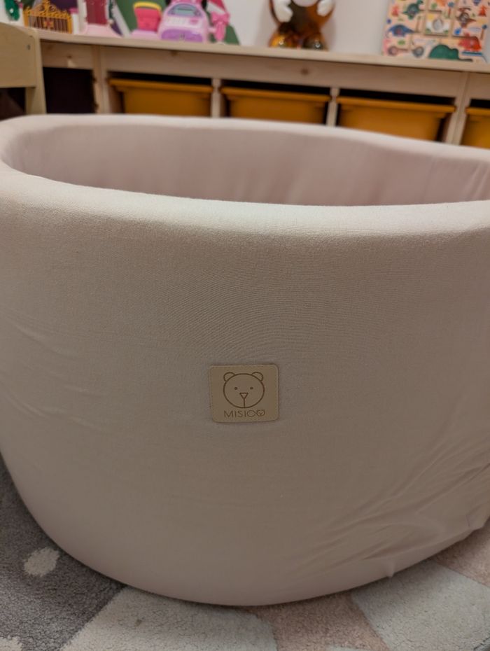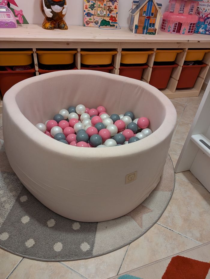 Piscine de la marque Misioo avec ses balles rose/grise/blanche En parfait état La housse est lavable