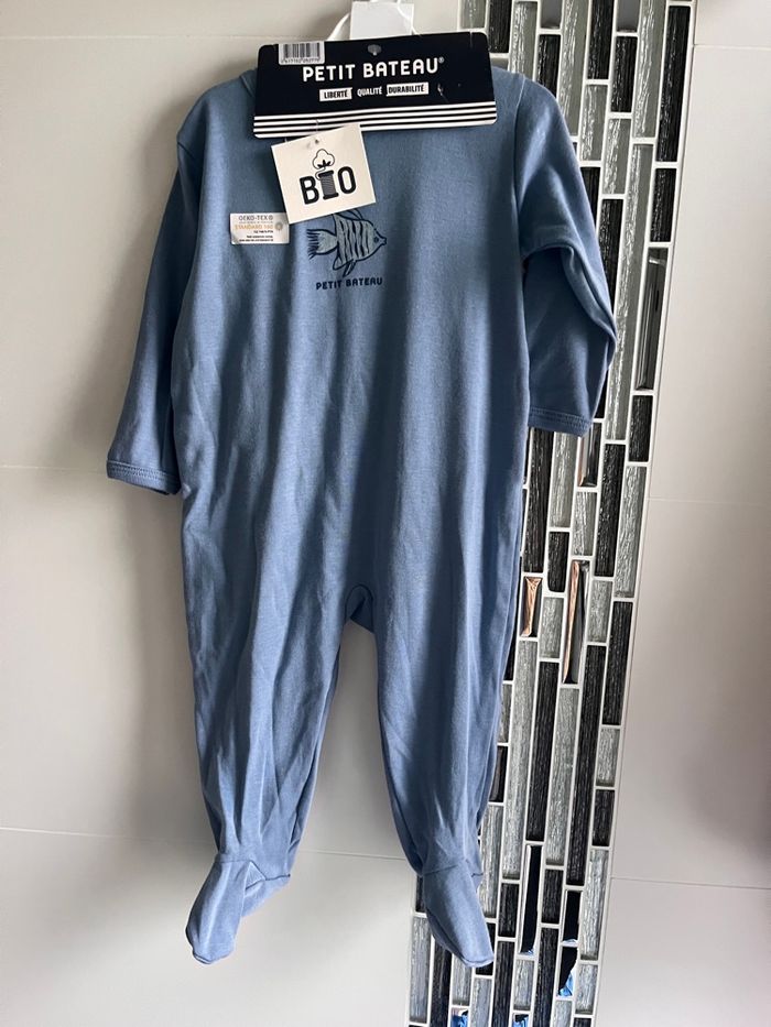 Pyjama mi-saison 1 pièce pour petit garçon Matière biologique Marque Petit Bateau Taille 12 mois Coloris bleu Neuf