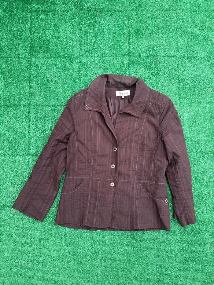 Blazer Armand Thiery (ligne Affinités) marron chocolat à fines rayures verticales, col châle, poches fendues et coupe structurée cintrée. Doublure intégrale, idéal pour un look professionnel ou chic. 🏷️ Marque: Armand Thiery 📏 Longueur: 59 cm 📐 Largeur: 44 cm 👚 Taille: L 🧵 Matières: 47% coton, 53% polyester 🛍️ N’hésitez pas à faire un lot j’ai beaucoup d’articles en ventes. 📦 Envoi ou remise main propre à Limoges. #ArmandThiery #BlazerFemme #Affinites #BlazerMarron #RayuresVerticales #BlazerRayé #BlazerChâle #ArmandThieryFemme #BlazerCintré #VestRayée #BlazerPro #ModeChic #BlazerLaine #PochesFendues #BlazerDoublé #StylePro #VestMarron #BlazerPrintemps #LookBureau