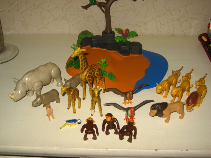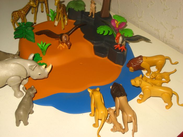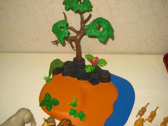 Lot playmobil nombreux animaux,grand socle avec végétations le tout en très bon etat.Prix ferme non négociable