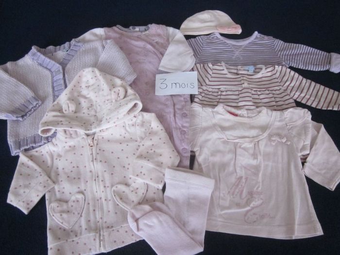 3m, 3 hauts ml + collants + ensemble combi sans pied sans manche + haut ml + veste à capuche + gilet + bonnet offert, tex, colin colline, tissaia, kiabi, boite à malices