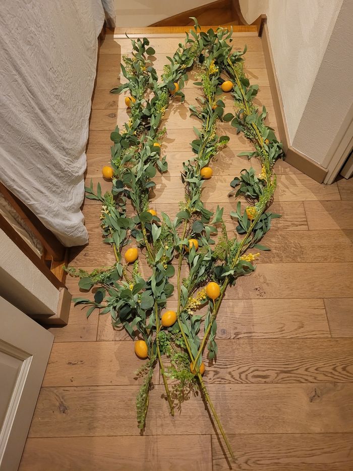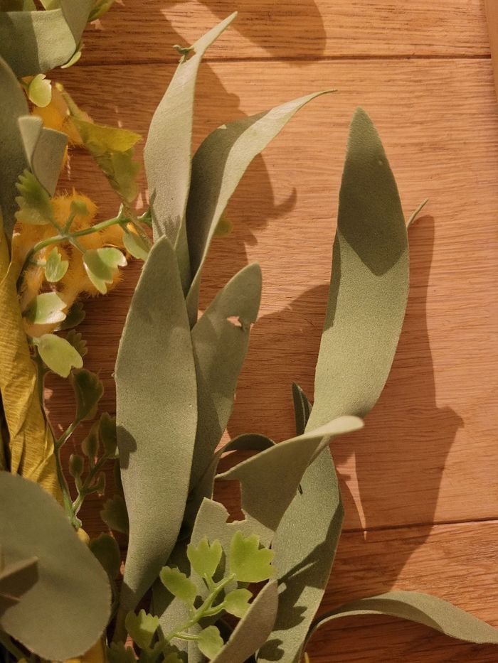 Quelques feuilles sont abîmées (Cf dernière photo). Je les ai achetées environ 35 euros la branche. Je vends les 4 à 16 euros ou l'unité à 5 euros. Je les ai utilisées comme chemin de table pour un anniversaire sur le thème de l'Italie.