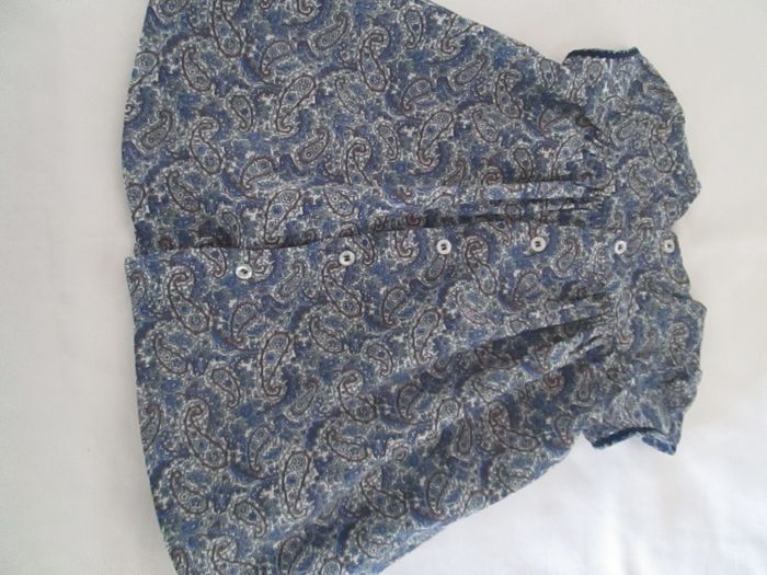Vends robe Bout'chou bleue avec bloomer. Robe en 100 % coton. Boutonnage dans le dos sur toute la longueur. Bloomer élastiqué à la taille et aux cuisses. Bloomer en 100 % coton. Taille 6 mois. Neufs, les 2 n'ont jamais été portés. Pour plus de choix, allez consulter mes autres annonces.