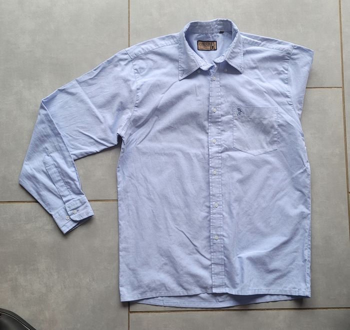 Très jolie chemise manches longues, de couleur bleu clair, de la marque Obispo Élysées Diffusion, taille 39/40, en très bon état. Article lavé pour la vente.