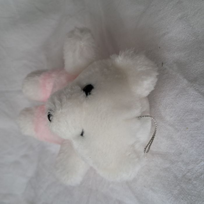 Peluche doudou petit ours ourson blanc et rose Vintage 90's Dimensions : 14 x 12 x 7 cm Poids : 48 grammes Très bon état, voir photos