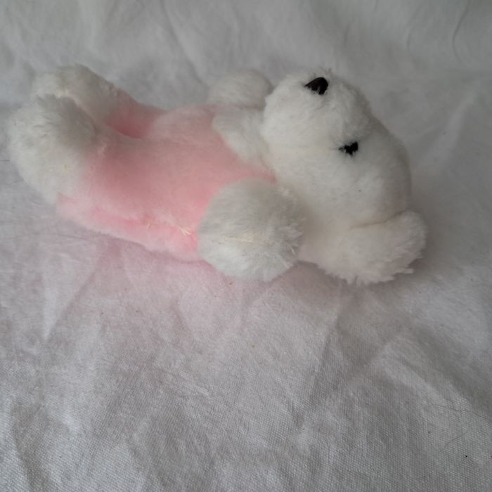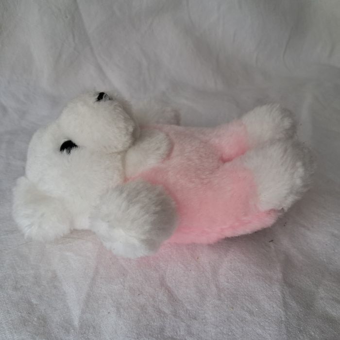 Peluche doudou petit ours ourson blanc et rose Hauteur 14 cm vintage 90's - photo numéro 1