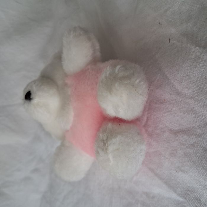 Peluche doudou petit ours ourson blanc et rose Hauteur 14 cm vintage 90's - photo numéro 3