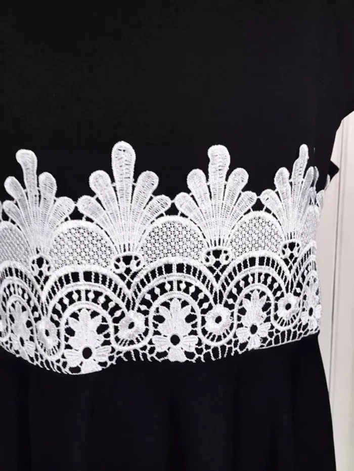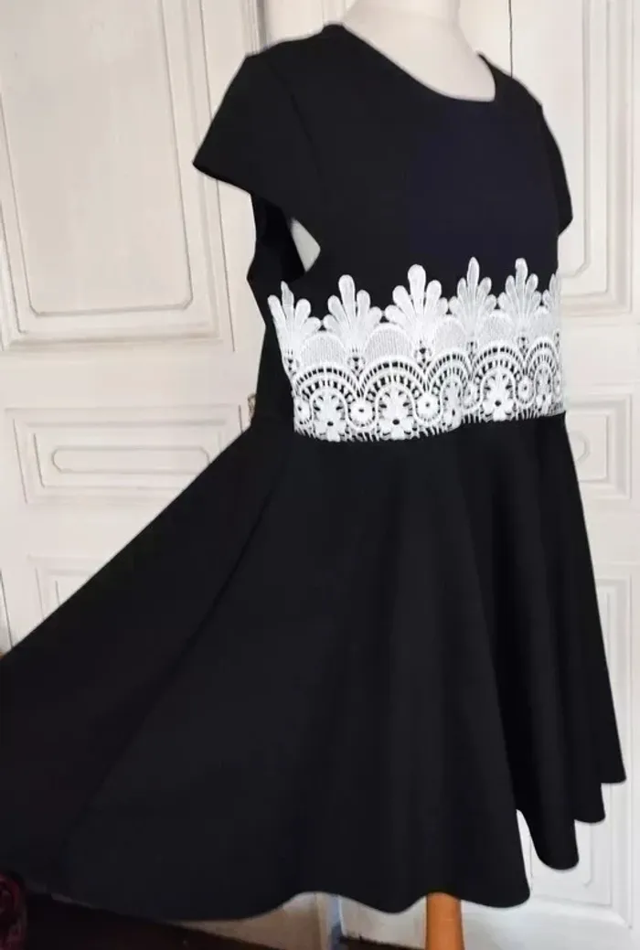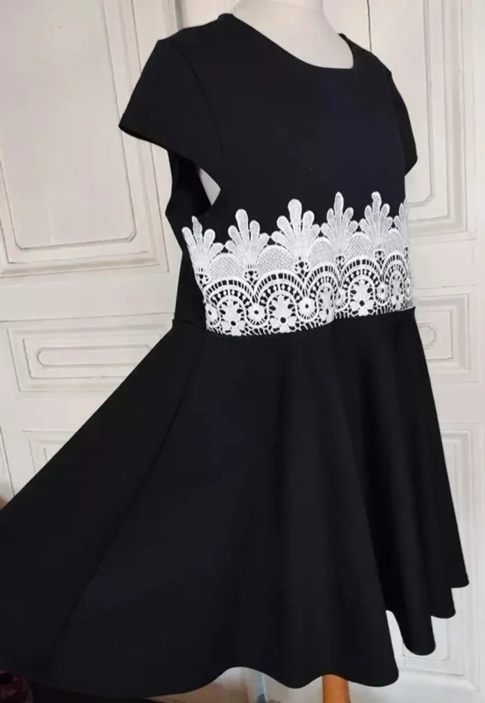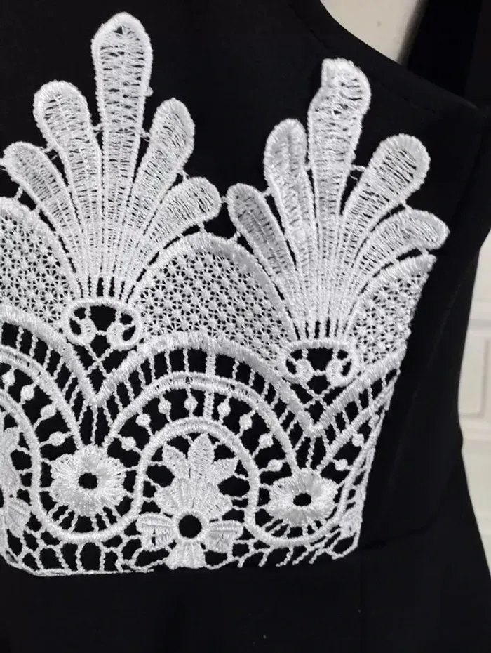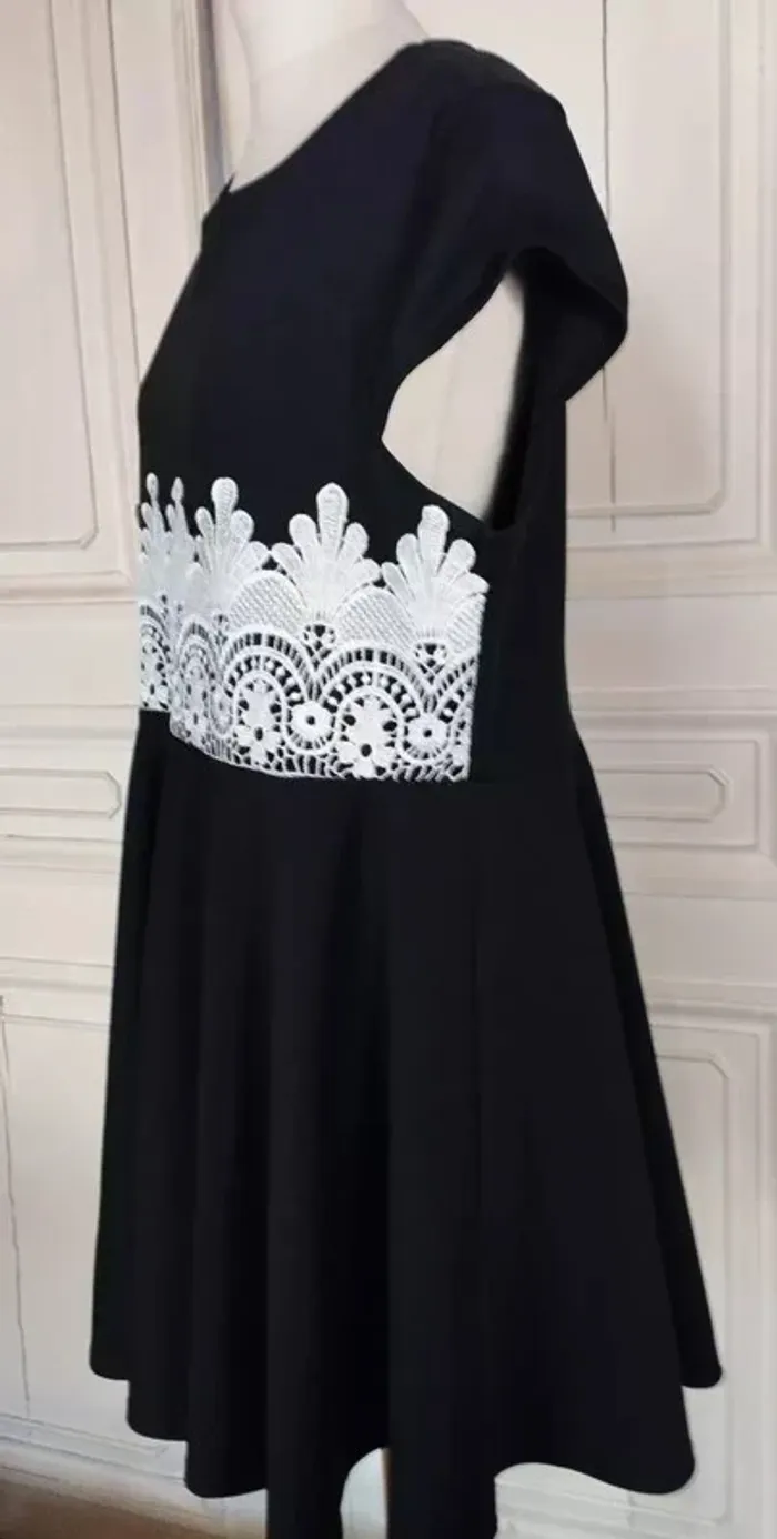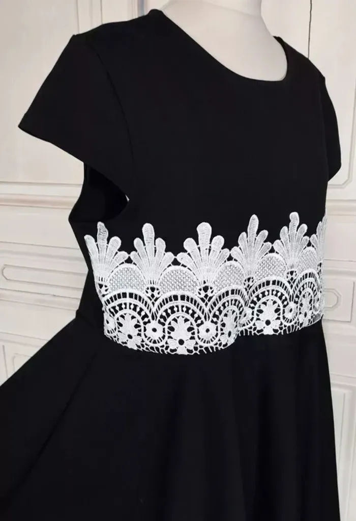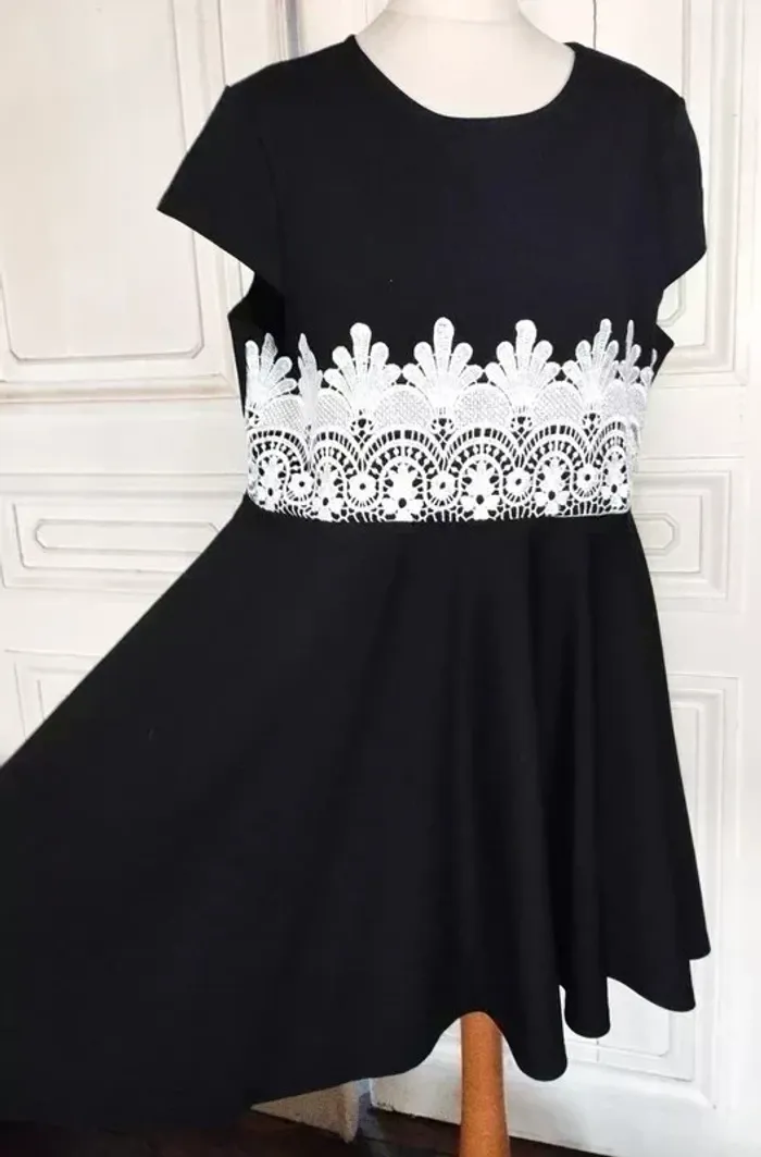 RUBY'CLOSET..LE PLACARD DE RUBY.. ROBE SOIREE T UK 22 CORRESPOND A UN 48/50 VOIR MESURES DETAILLEES AU BAS MODELE SOIREE ELEGANT ET ULTRA FEMININ CONFORTABLE BIEN EXTENSIBLE TISSU SATINé NOIR INTENSE SEMI LOURD TOMBé IMPECCABLE COL OVALE OUVERTURE 23 CM PROFONDEUR 7 CM MANCHES COLLERETTES 12 CM OUVERTURE CONFORTABLE PLASTRON DENTELLE CREME CONTRASTANT MARQUANT LE DESSUS DE LA TAILLE DEVANT SUR 15 CM DE HAUTEUR AVEC ARABESQUES ET FLEURS ET REBORDS RELIEF TAILLE PLUTOT HAUTE DONNANT SUR UNE DECOUPE DE JUPE EN COROLLE AVEC PLIS DANSANTS ET AMPLITUDE AU BAS DE 400 CM INFROISSABLE TENUE IMPECCABLE 95% POLYESTER 5% ELASTHANE MESURES PRISES A PLAT PUIS EN ETIRANT RAISONNABLEMENT EPAULES 45 A 49 CM MANCHES 12 CM POITRINE 55 A 60 CM TAILLE 51 A 55 CM BAS 200 CM AMPLITUDE 400 CM LONGUEUR 92 CM