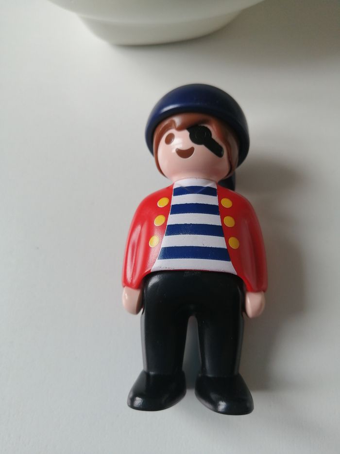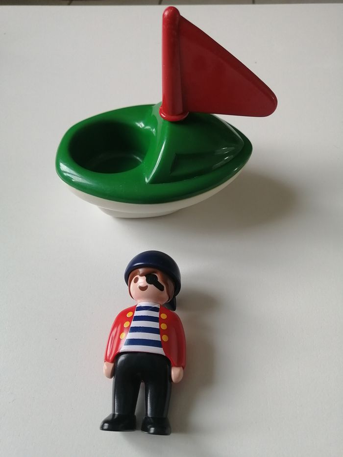 bateau et pirate set de jeu reconstitué le bateau n'est pas de marque playmobil vintage figurine bonhomme pirate playmobil 1.2.3 geobra 1990 12 cm pour le bateau 7 cm pour le bonhomme qui ne peut pas s'asseoir