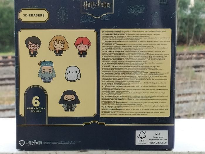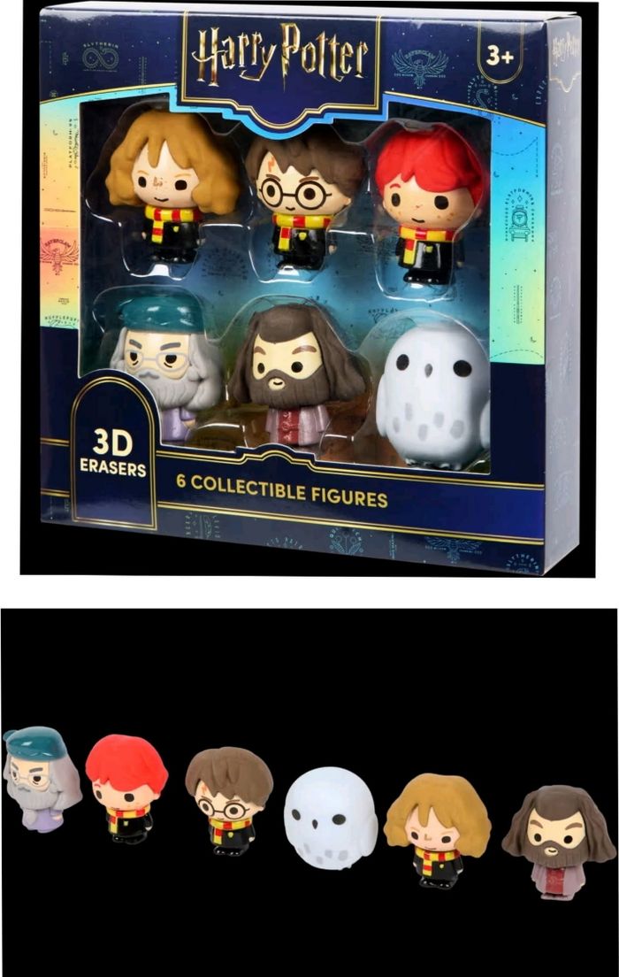 PLAISIR D'OFFRIR 🎁 COLLECTION HARRY POTTER 5 ANS +. MIXTE- Ce Coffret est le must pour tout vrai potterheard ! Et joliment présenté avec sa belle boîte fenêtre , parfait pour un cadeau. - COFFRET 3D ERASERS- 6 FIGURINES COLLECTOR GOMME. Produit Officiel Harry Potter. Faites entrer la magie de Poudlard dans votre quotidien avec ces 6 adorables figurines en gomme tridimensionnelle. Que vous les utilisez pour ranger votre bureau, ou que vous les ajoutiez à votre collection croissante, ce coffret enchantera à coup sûr ! Dans ce coffret 6 personnages cultes de la saga sont proposés : Harry Potter, Ron Weasley, Hermione Granger, Albus Dumbledore, Hagrid et Hedwige la chouette. Les gommes sont utilisables, mais la plus part préfèrent les conserver comme objet Collector. 🎁COFFRET À 8 € Un Cadeau l'original pour un fan ou collectionneur.