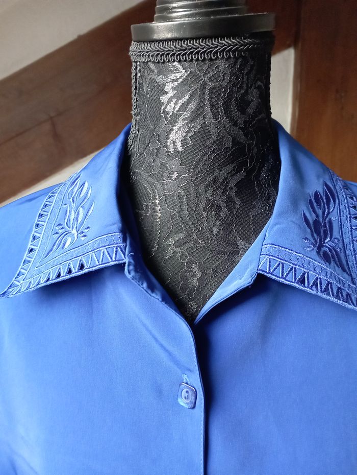 chemise bleue - manches et col brodées - photo numéro 2
