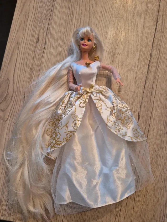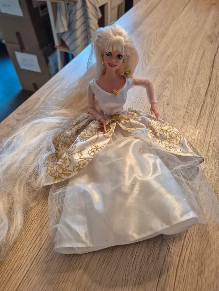 Poupée Barbie en robe de mariée d’origine des années 1990 Tres bon etat (poupée, vetements, cheveux)