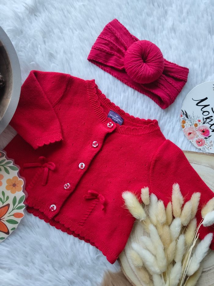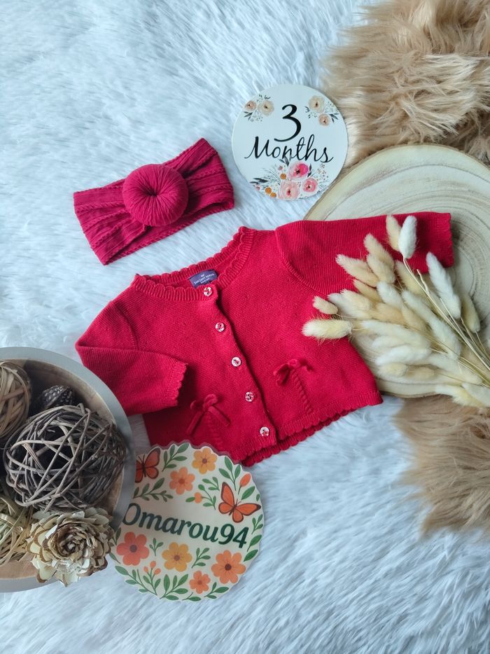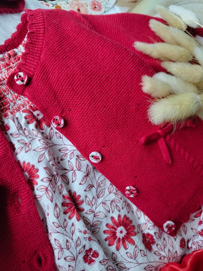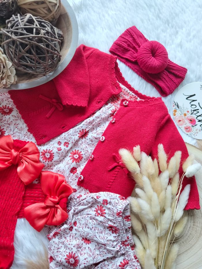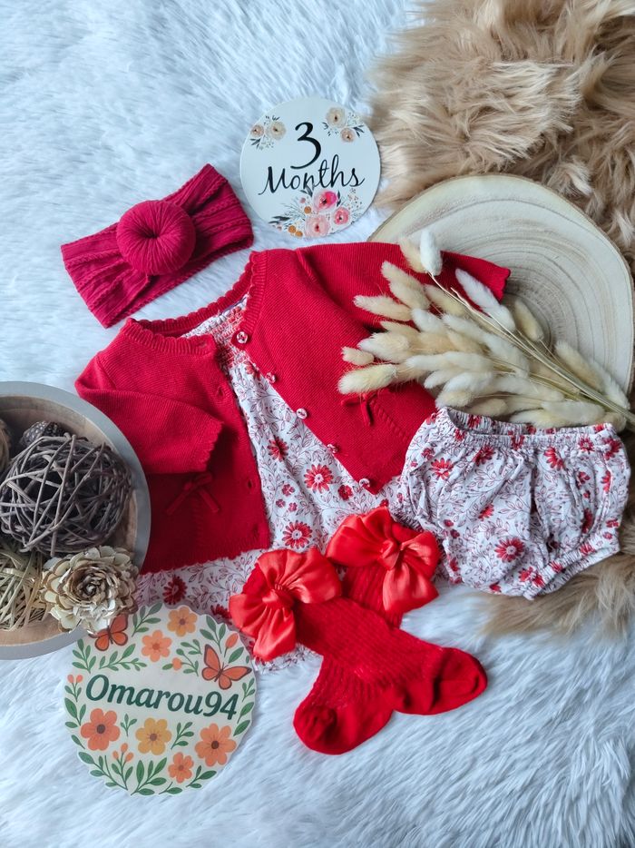 ✅ Neuf sans étiquette ✅ Gilet tricot+ robe fleurie et son bloomer+ bandeau cheveux et chaussettes hautes
