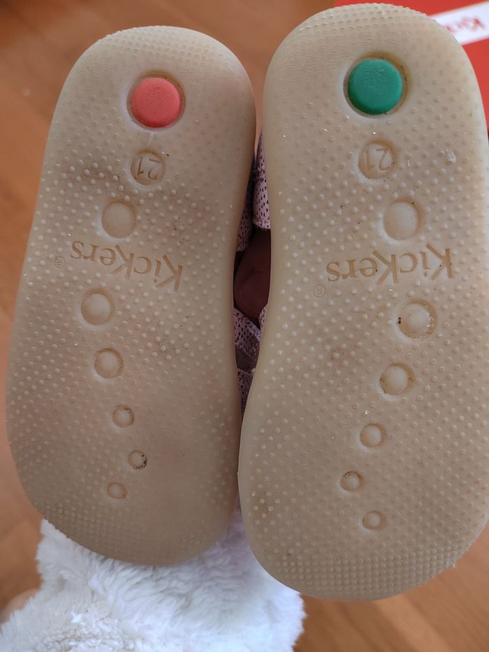 Sandales été Kickers fille – Taille 21 – Très bon état Vends sandales d’été Kickers taille 21, coloris rose pailleté ✨ Très bon état, peu portées. ✔️ Fermeture par scratch à la cheville + boucles réglables ✔️ Chaussures confortables et stables, idéales pour les premiers pas ✔️ Semelles propres, cuir bien entretenu ✔️ Marque de qualité reconnue Parfaites pour l’été ☀️