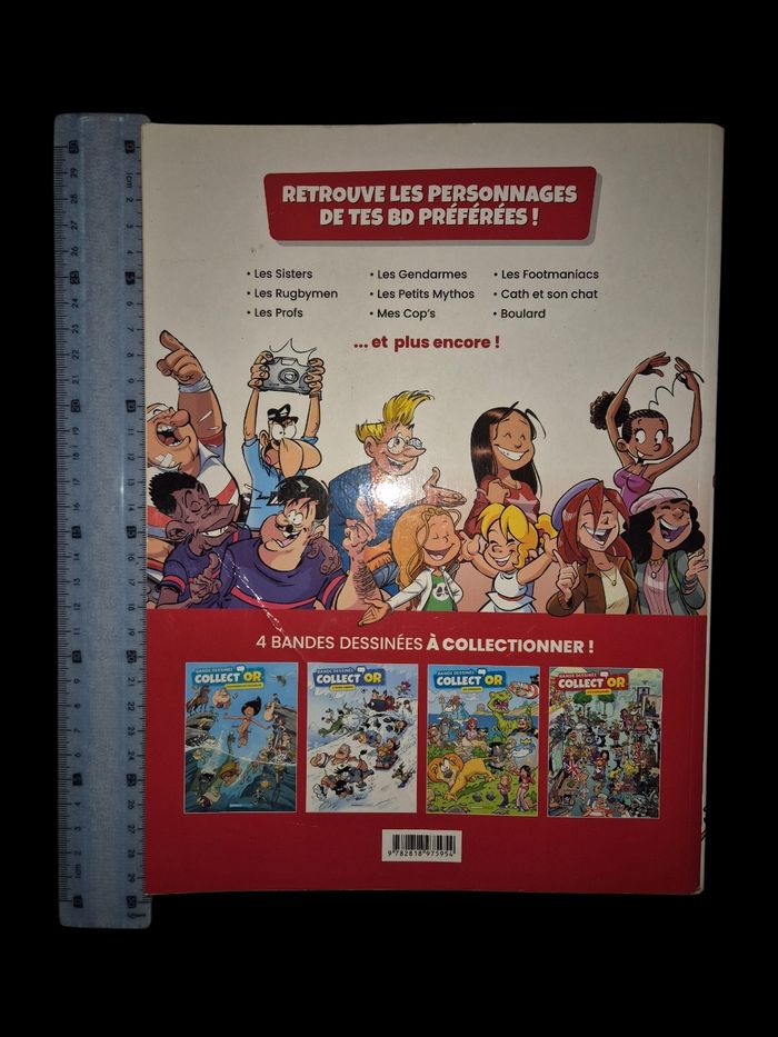 Collect'Or - Les Passionnés (édition spéciale 4 BD en 1) Éditions Bamboo – Collection Collect'Or ISBN : 978-2-8189-7595-4 Format album cartonné grand format, 48+ pages, planches ultra-détaillées et bondées (style cherche-et-trouve géant : foule de collectionneurs passionnés avec des milliers de détails à scruter !) Un album BD humour 100 % fun pour retrouver tes héros préférés cachés dans des scènes surchargées : Les Sisters (Marine & Wendy) Les Profs + Boulard le cancre légendaire Les Rugbymen (l'équipe du village) Les Gendarmes maladroits Les Footmaniacs en mode supporter enragé Les Petits Mythos (Zeus, Hercule en mini) Cath et son chat (Cath + Sushi) Mes Cop's (les ados girly) ... et plein d'autres clins d'œil Bamboo (animaux, dinos, vacances, hiver...) ! Thème : les collectionneurs fous (foot, BD, poupées, timbres, vinyles, miniatures, bouteilles, jouets vintage...). Vide-greniers géant, salon de collectionneurs, maisons envahies – gags absurdes, bulles drôles et références partout. Parfait pour rire en famille, passer des heures à chercher les persos, et faire des chasses au trésor visuelles.