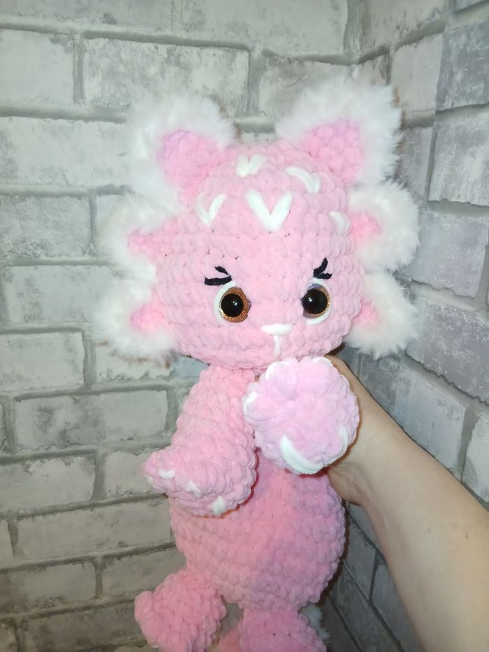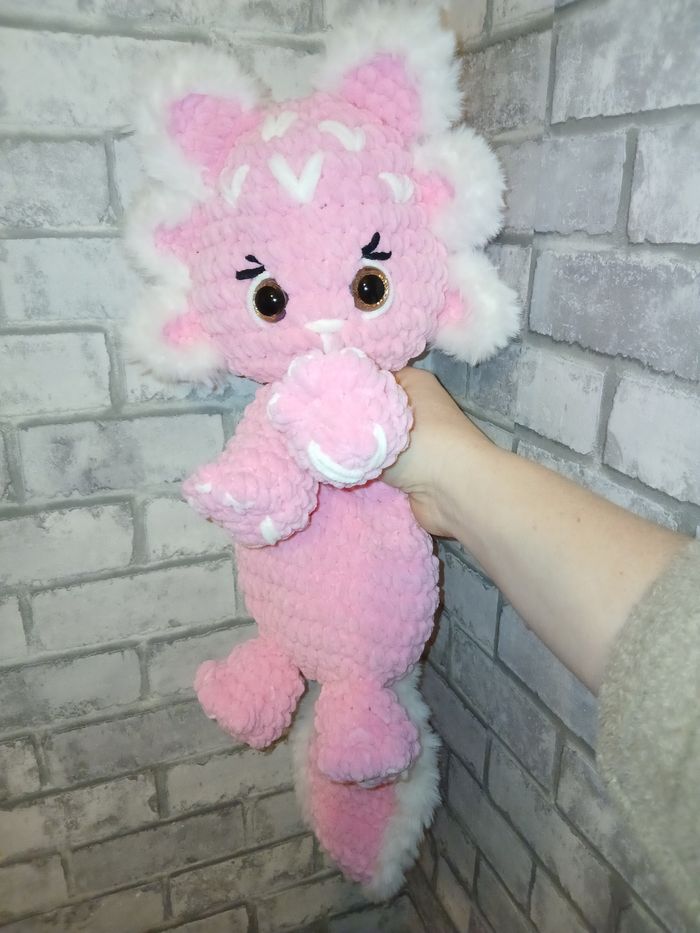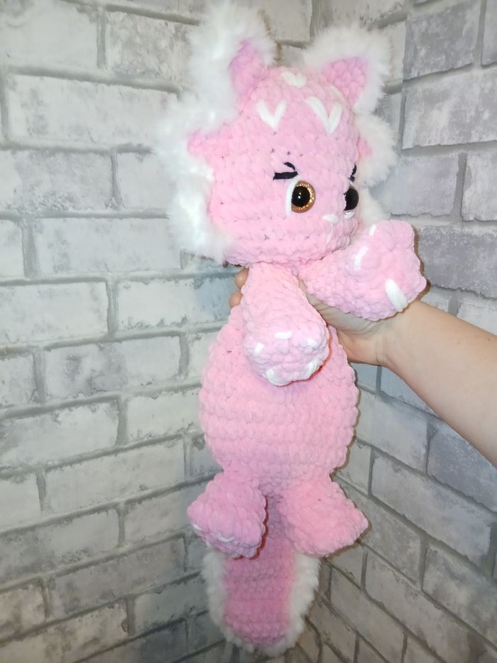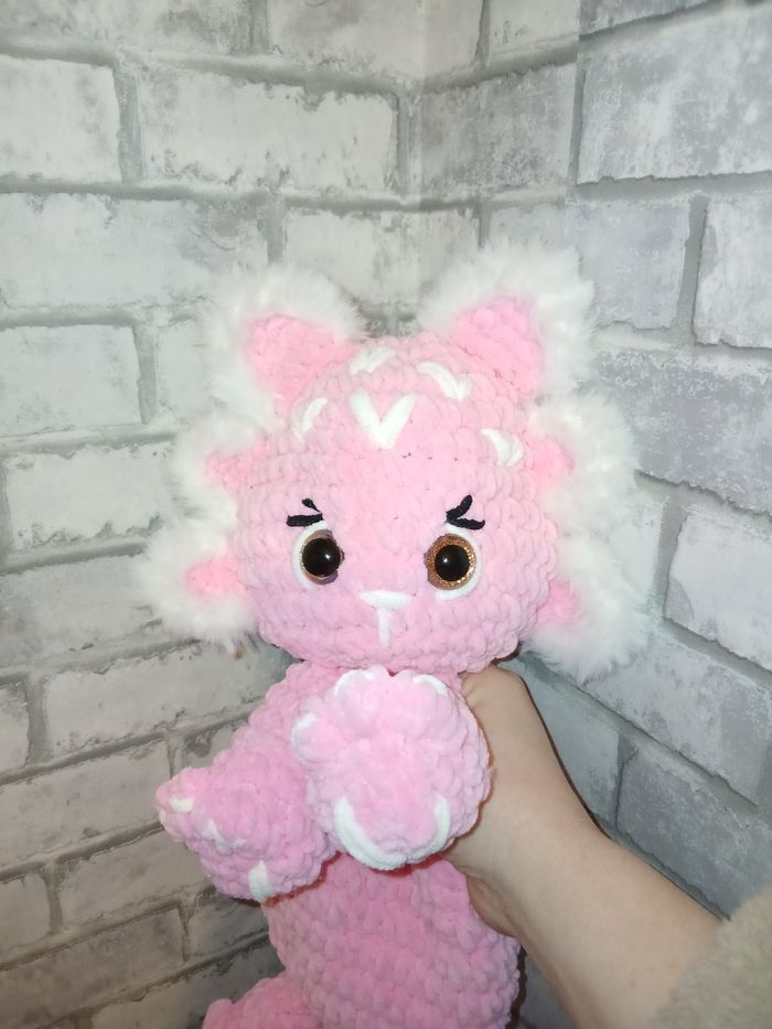 Peluche artisanale – Petite créature rose au crochet 🧶 Laissez-vous séduire par cette adorable peluche rose, entièrement faite à la main au crochet. Avec son fil tout doux, ses détails blancs et sa petite bouille expressive, elle est parfaite pour apporter tendresse et originalité 💖 ✨ Caractéristiques : Fabrication artisanale, pièce unique Fil doux et moelleux Yeux de sécurité Détails soignés (oreilles, queue, petites pattes) Convient comme doudou (sous surveillance) ou objet déco 🎁 Idéale comme cadeau de naissance, d’anniversaire ou pour les amoureux de créations faites main. 📏 Taille : environ 56 cm tête jusqu'au bas de la queue 🧼 Entretien : lavage à la main recommandé 📩 N’hésitez pas à me contacter pour plus d’informations