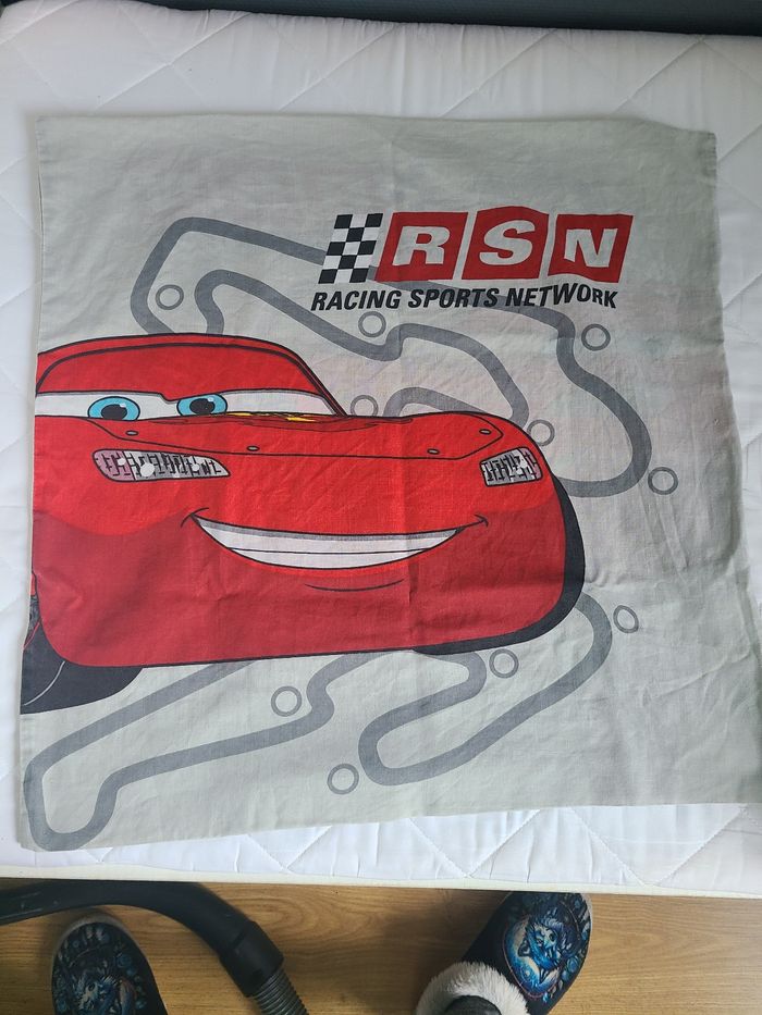 Bonjour vend housse de couette environ 190cm X 126cm et taie d'oreiller environ 64cm X 64cm. En bon état, s'attache avec des bouton.
