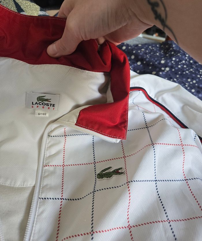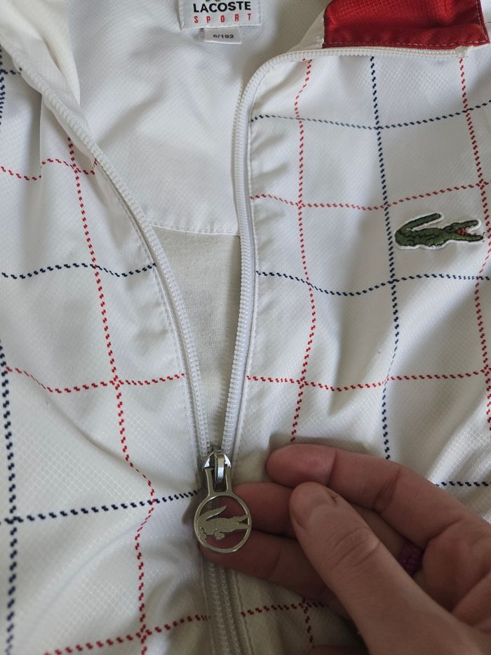 Je vends cette veste sport Lacoste blanche à carreaux rouges et bleus. - Type de produit : Veste sport - Marque : Lacoste - Taille : L - Couleur : Blanc, avec carreaux rouges et bleus - Caractéristiques : Fermeture éclair, Poches latérales N'hésitez pas à me contacter pour plus d'informations ou de photos. 20€ Envoi très soigné possible ou remise en mains propres sur Marseille 13005 souhaitée